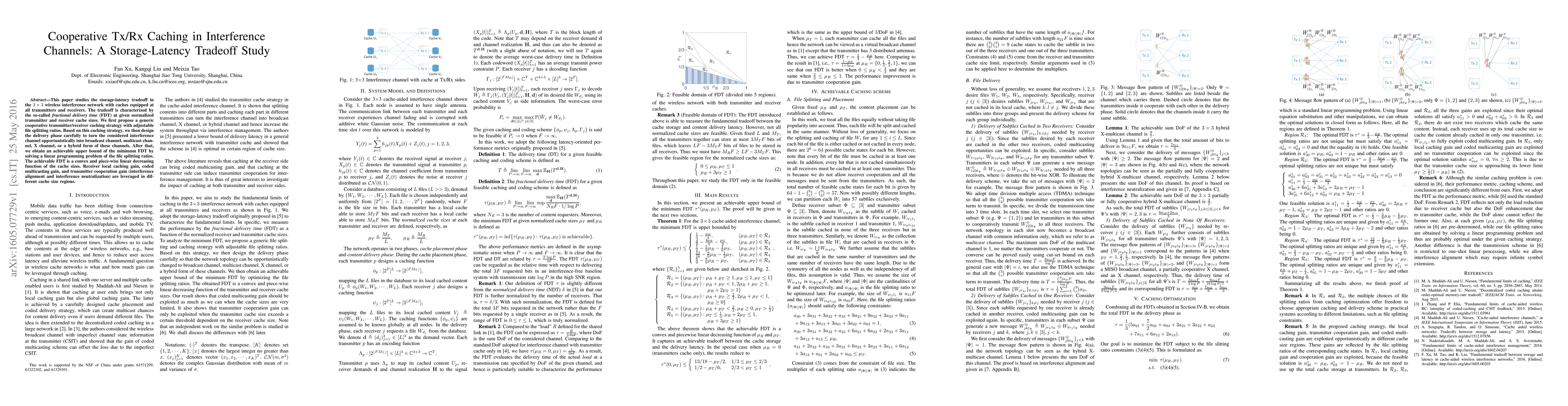 This paper studies the storage-latency tradeoff in the $3\times3$ wireless interference network with caches equipped at all transmitters and receivers. The tradeoff is characterized by the so-called fractional delivery time (FDT) at given normalized transmitter and receiver cache sizes. We first propose a generic cooperative transmitter/receiver caching strategy with adjustable file splitting ratios. Based on this caching strategy, we then design the delivery phase carefully to turn the considered interference channel opportunistically into broadcast channel, multicast channel, X channel, or a hybrid form of these channels. After that, we obtain an achievable upper bound of the minimum FDT by solving a linear programming problem of the file splitting ratios. The achievable FDT is a convex and piece-wise linear decreasing function of the cache sizes. Receiver local caching gain, coded multicasting gain, and transmitter cooperation gain (interference alignment and interference neutralization) are leveraged in different cache size regions.