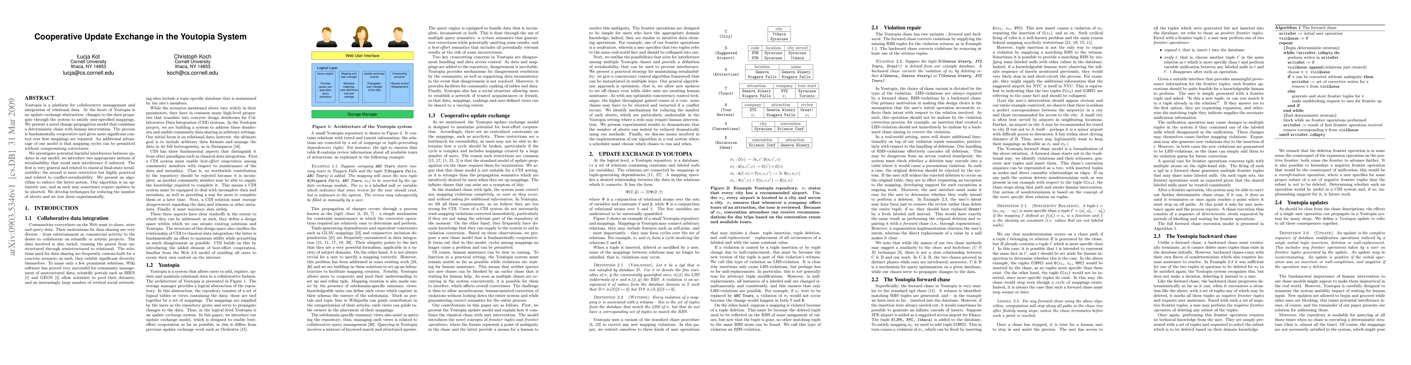 Youtopia is a platform for collaborative management and integration of relational data. At the heart of Youtopia is an update exchange abstraction: changes to the data propagate through the system to satisfy user-specified mappings. We present a novel change propagation model that combines a deterministic chase with human intervention. The process is fundamentally cooperative and gives users significant control over how mappings are repaired. An additional advantage of our model is that mapping cycles can be permitted without compromising correctness. We investigate potential harmful interference between updates in our model; we introduce two appropriate notions of serializability that avoid such interference if enforced. The first is very general and related to classical final-state serializability; the second is more restrictive but highly practical and related to conflict-serializability. We present an algorithm to enforce the latter notion. Our algorithm is an optimistic one, and as such may sometimes require updates to be aborted. We develop techniques for reducing the number of aborts and we test these experimentally.