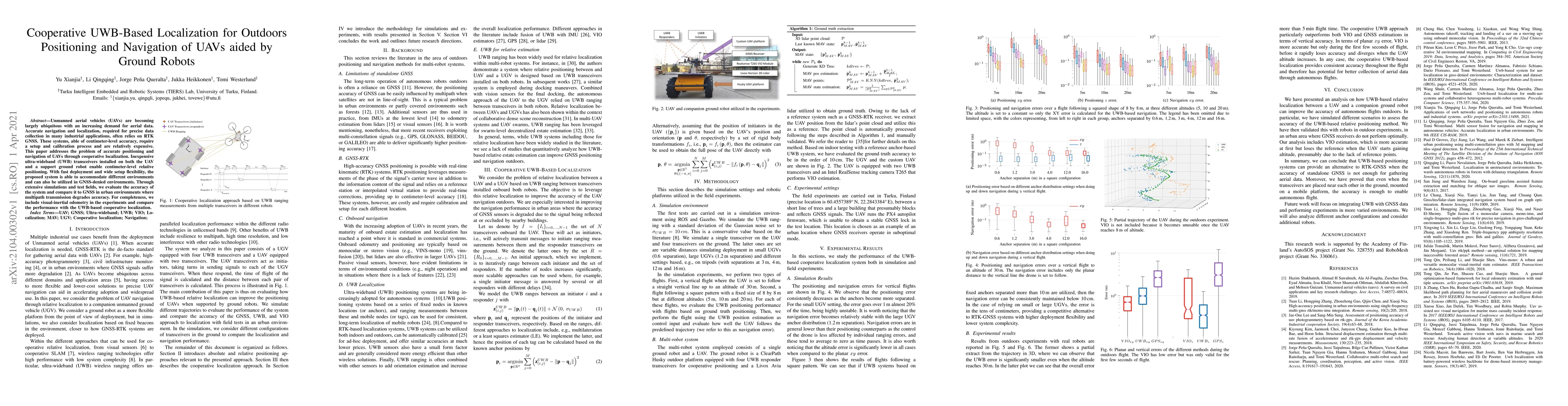 This paper proposes a cooperative UWB-based localization system for UAVs using ground robots to achieve centimeter-level positioning and navigation without relying on expensive RTK GNSS. The system demonstrates accuracy and flexibility in various environments, including GNSS-denied areas, through simulations and field tests.