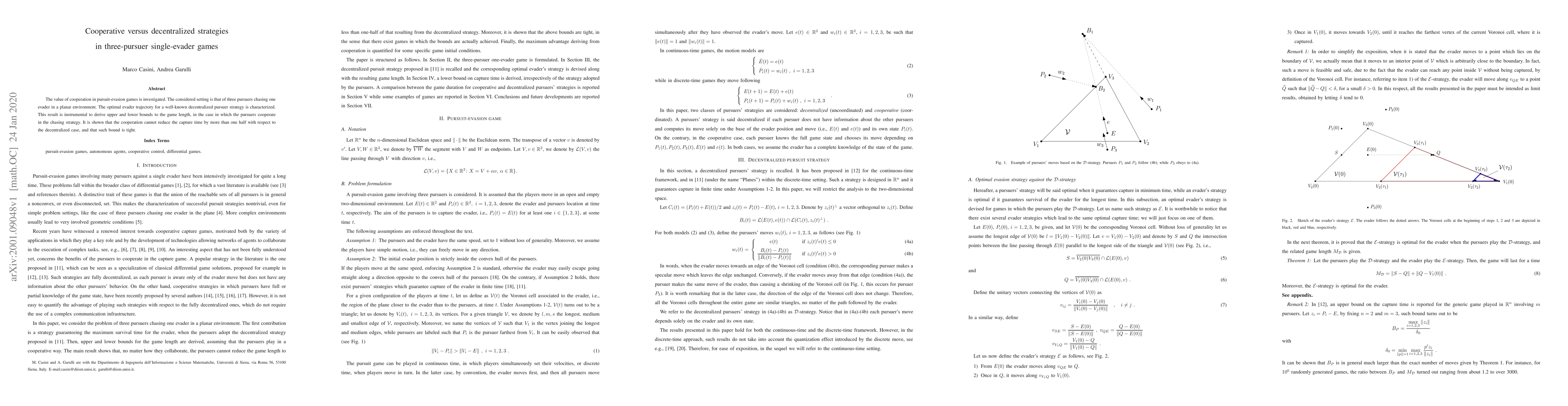 This paper investigates cooperative versus decentralized strategies in three-pursuer single-evader games, finding that cooperation can only reduce the capture time by at most half compared to decentralized strategies, with this bound proven to be tight.