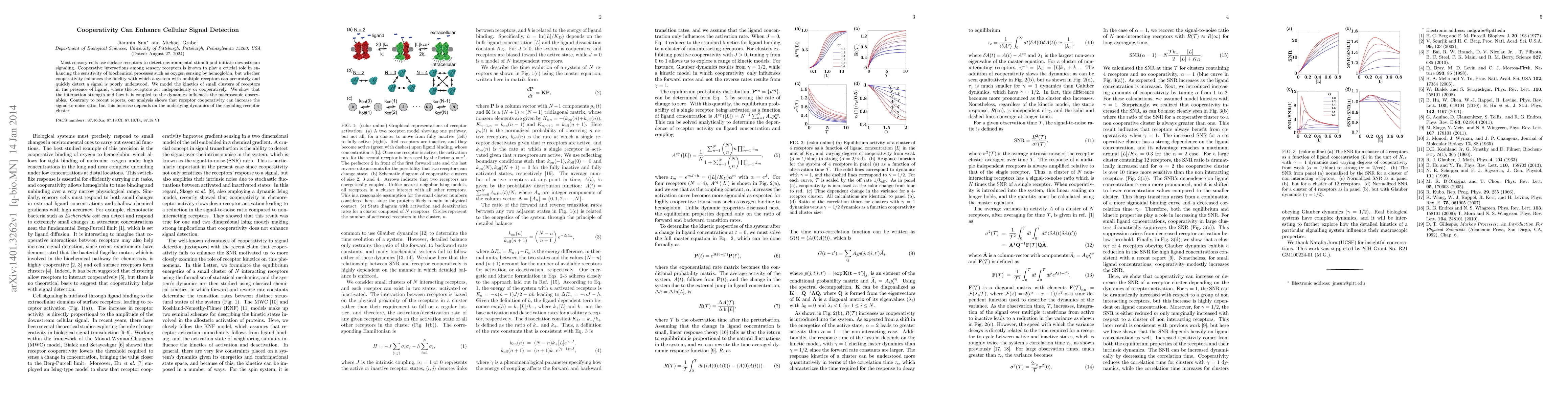 This research investigates how cooperative interactions among sensory receptors can enhance the detection of environmental signals. The study demonstrates that receptor cooperativity can improve the signal-to-noise ratio, but this effect is contingent on the dynamics governing the receptor cluster's response to ligands.