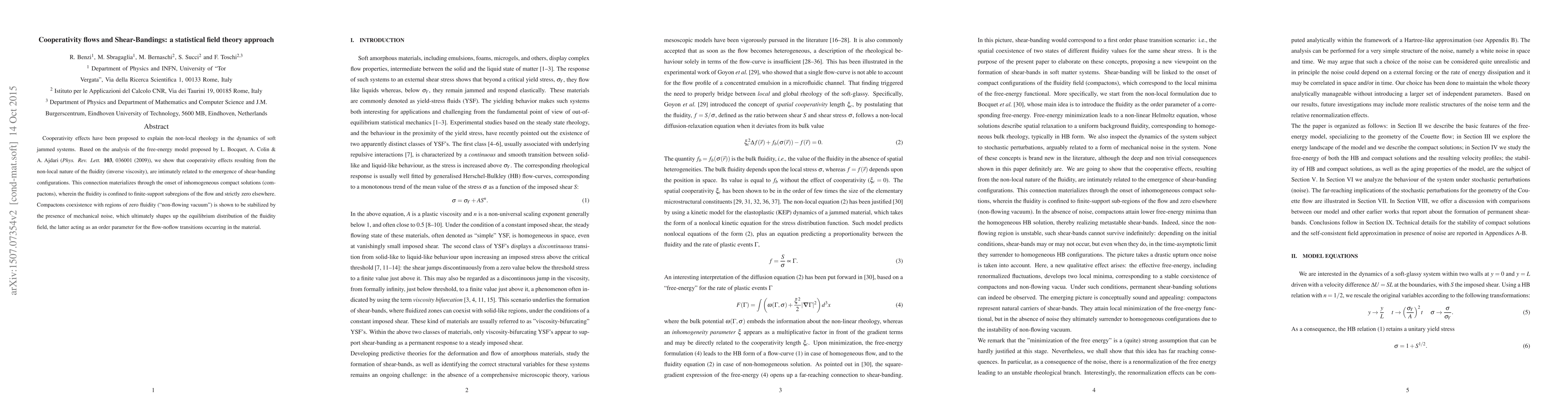 Research shows that cooperativity effects in soft jammed systems lead to shear-bandings through the formation of compactons with zero fluidity regions, which are stabilized by mechanical noise.