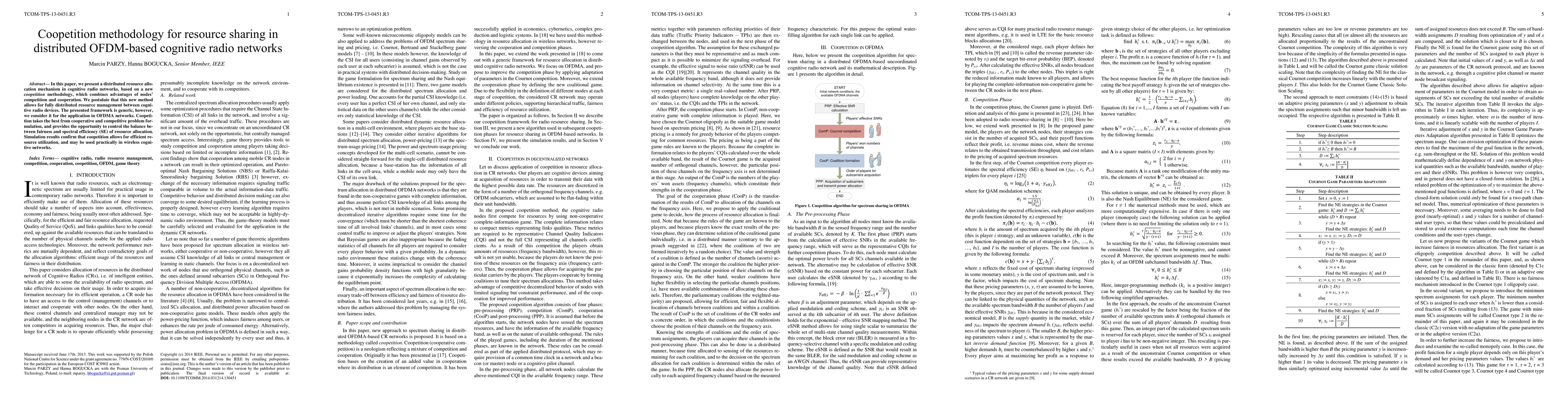 This paper introduces a coopetition methodology for distributed resource allocation in cognitive radio networks, combining competition and cooperation for optimal distributed management. Simulation results demonstrate that this approach efficiently balances fairness and spectral efficiency, offering practical utility in wireless cognitive networks.
