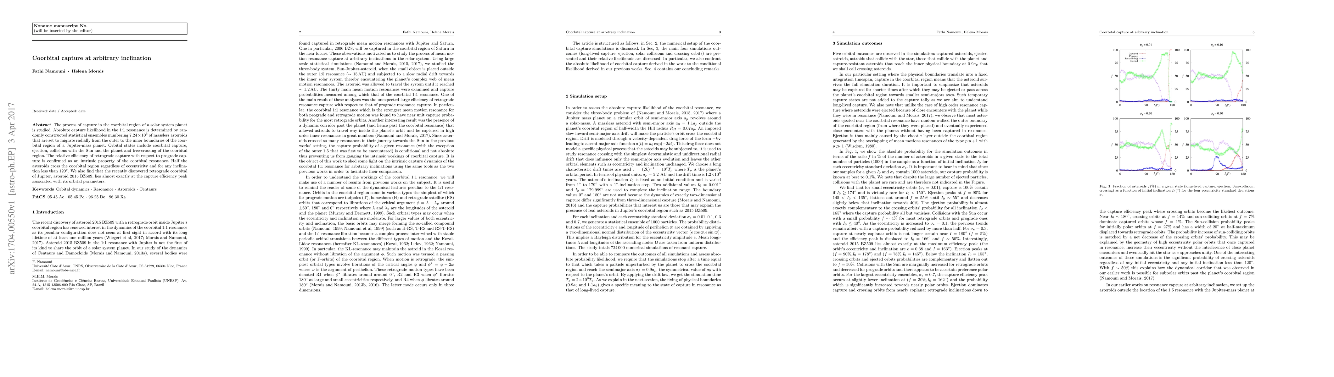This paper investigates the likelihood of coorbital capture in a solar system, finding that half of asteroids migrate through the coorbital region regardless of eccentricity and inclination below $120^\circ$. It confirms retrograde capture is more efficient than prograde capture, with the discovered retrograde coorbital asteroid 2015 BZ509 aligning with the capture efficiency peak.