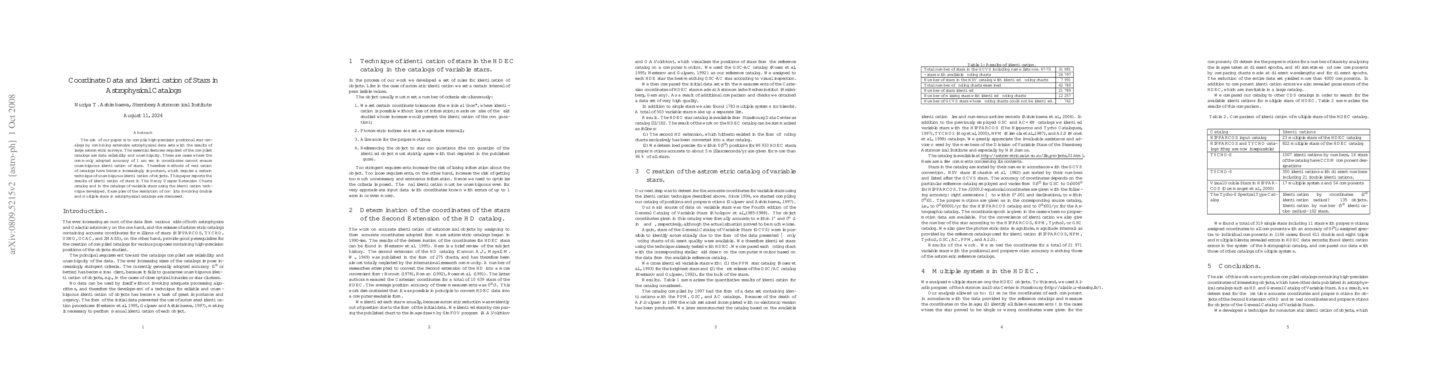 This paper aims to create high-precision positional stellar catalogs by compiling extensive astrophysical data and astrometric surveys, emphasizing data reliability and uniqueness. It introduces a method for verifying catalog entries, addressing conflicts in identifying double and multiple stars, and improving upon the common 1 arc sec precision.
