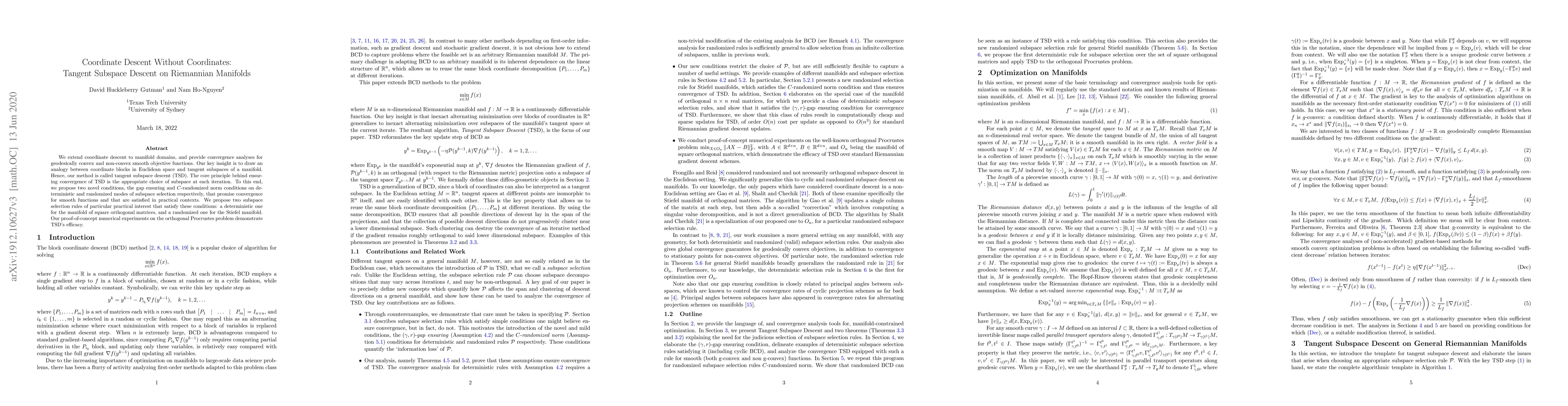 Researchers develop a new optimization method called Tangent Subspace Descent (TSD) for solving problems on Riemannian manifolds, with convergence guarantees for smooth objective functions under certain conditions.