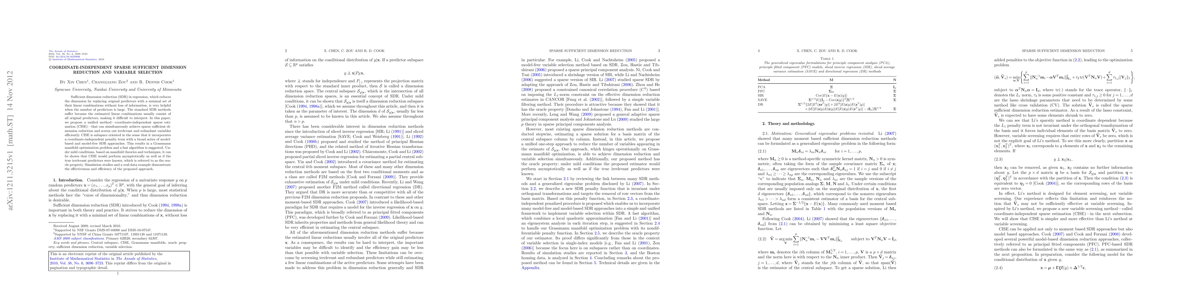 This paper introduces a method called coordinate-independent sparse estimation (CISE) for sparse sufficient dimension reduction and variable selection in regression. CISE incorporates a coordinate-independent penalty to efficiently identify relevant variables and achieve interpretable linear combinations, demonstrating effectiveness through simulations and real-data applications.