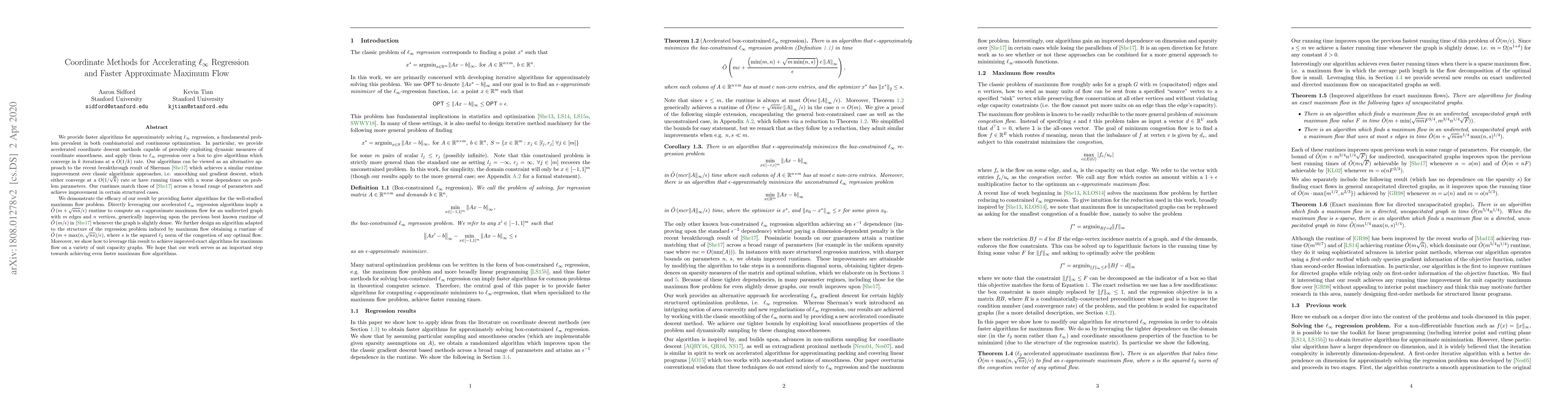 This paper presents faster algorithms for approximating $orall$ regression and maximum flow problems, achieving $O(1/k)$ convergence rates and improving runtime over existing methods.