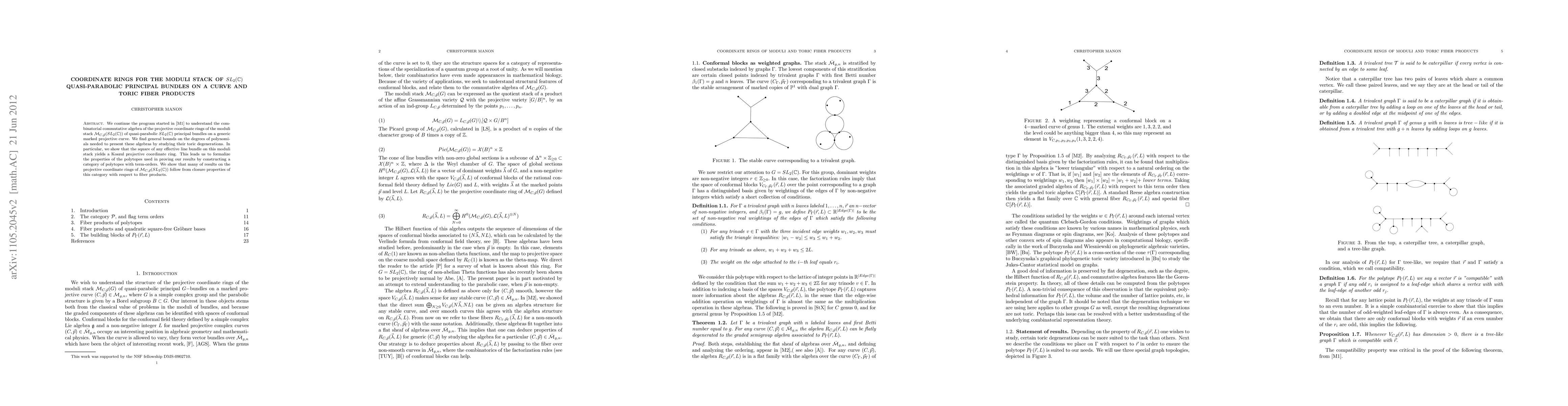 This paper investigates the combinatorial commutative algebra of coordinate rings for moduli of quasi-parabolic $SL_2(\mathbb{C})$ principal bundles on curves, establishing bounds on polynomial degrees via toric degenerations and showing that square of effective line bundles yields a Koszul projective coordinate ring. It formalizes properties of polytopes and proves many results using fiber products in a constructed category of polytopes.