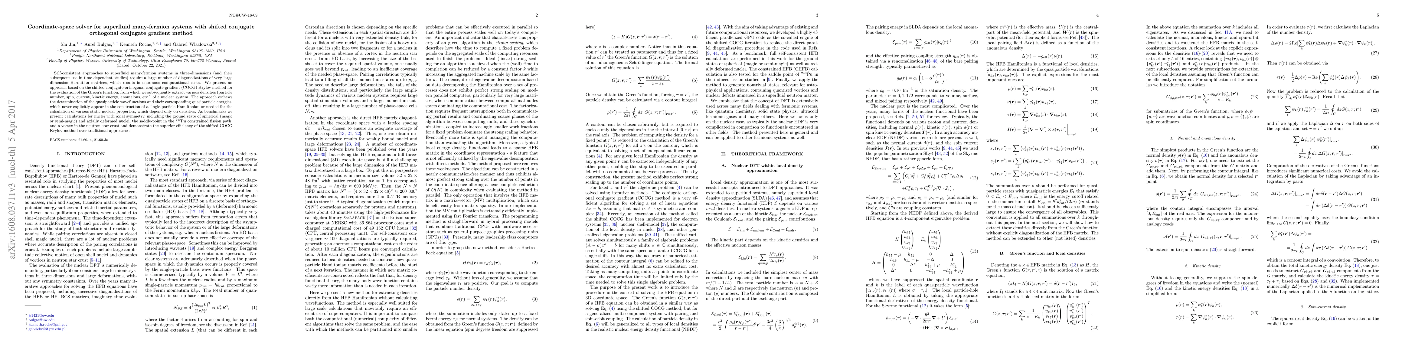 Self-consistent approaches to superfluid many-fermion systems in 3-dimensions (and subsequent time-dependent approaches) require a large number of diagonalizations of very large dimension hermitian matrices, which results in enormous computational costs. We present an approach based on the shifted conjugate-orthogonal conjugate-gradient (COCG) method for the evaluation of the Green's function, from which we subsequently extract various densities (particle number, spin, current, kinetic energy, etc.) of a nuclear system needed in self-consistent approaches. The approach eschews the construction of the quasiparticle wavefunctions and their corresponding quasiparticle energies, which are never explicitly needed in any density functional approaches. As benchmarks we present calculations for nuclei with axial symmetry, including the ground state of spherical (magic or semi-magic) and axially deformed nuclei, the saddle-point in the $^{240}$Pu constrained fission path, and a vortex in the neutron star crust.