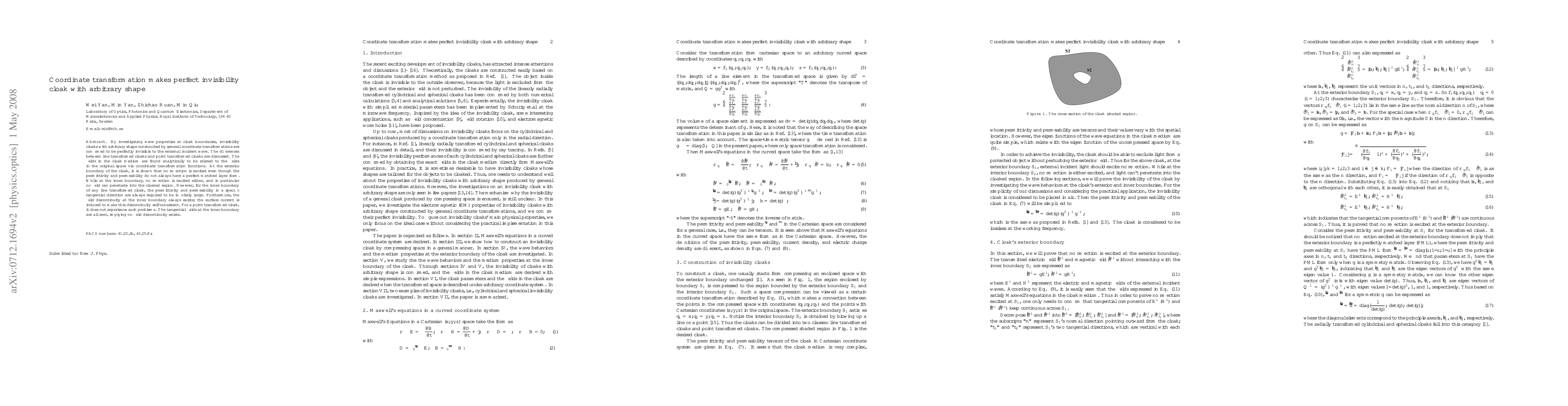 By investigating wave properties at cloak boundaries, invisibility cloaks with arbitrary shape constructed by general coordinate transformations are confirmed to be perfectly invisible to the external incident wave. The differences between line transformed cloaks and point transformed cloaks are discussed. The fields in the cloak medium are found analytically to be related to the fields in the original space via coordinate transformation functions. At the exterior boundary of the cloak, it is shown that no reflection is excited even though the permittivity and permeability do not always have a perfect matched layer form. While at the inner boundary, no reflection is excited either, and in particular no field can penetrate into the cloaked region. However, for the inner boundary of any line transformed cloak, the permittivity and permeability in a specific tangential direction are always required to be infinitely large. Furthermore, the field discontinuity at the inner boundary always exists; the surface current is induced to make this discontinuity self-consistent. For a point transformed cloak, it does not experience such problems. The tangential fields at the inner boundary are all zero, implying no field discontinuity exists