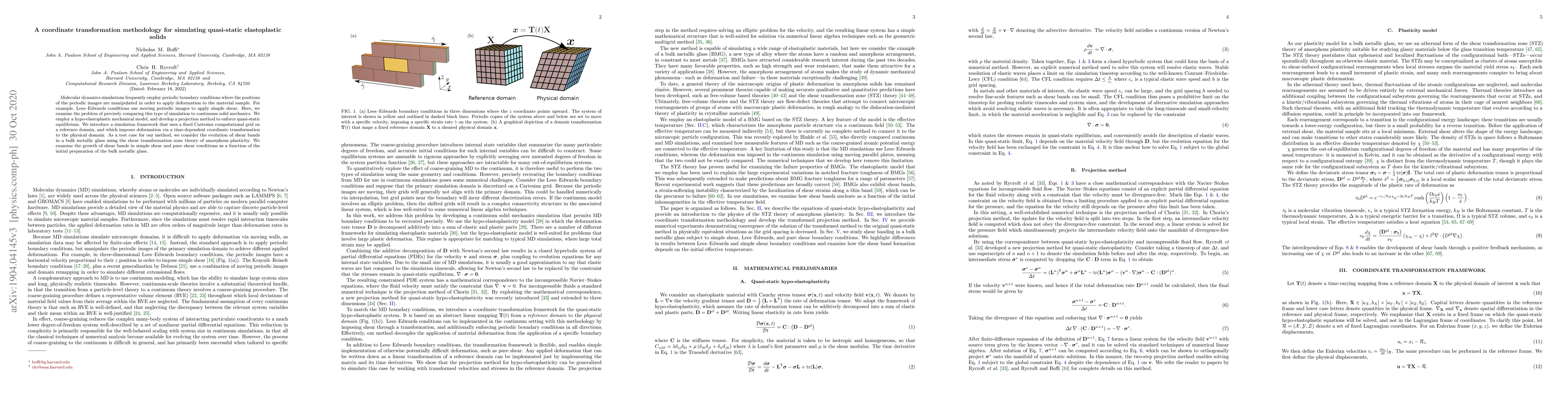 Researchers develop a new simulation framework to compare molecular dynamics with continuum solid mechanics, focusing on quasi-static elastoplastic solids and shear band growth in bulk metallic glasses.