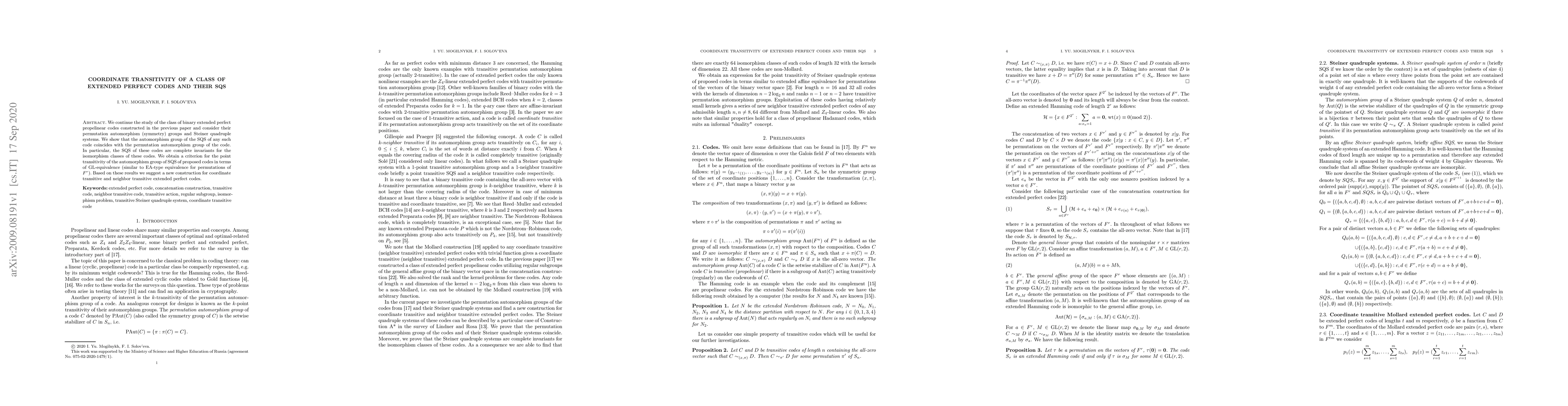 We continue the study of the class of binary extended perfect propelinear codes constructed in the previous paper and consider their permutation automorphism (symmetry) groups and Steiner quadruple systems. We show that the automorphism group of the SQS of any such code coincides with the permutation automorphism group of the code. In particular, the SQS of these codes are complete invariants for the isomorphism classes of these codes. We obtain a criterion for the point transitivity of the automorphism group of SQS of proposed codes in terms of GL-equivalence (similar to EA-type equivalence for permutations of F^r). Based on these results we suggest a new construction for coordinate transitive and neighbor transitive extended perfect codes.