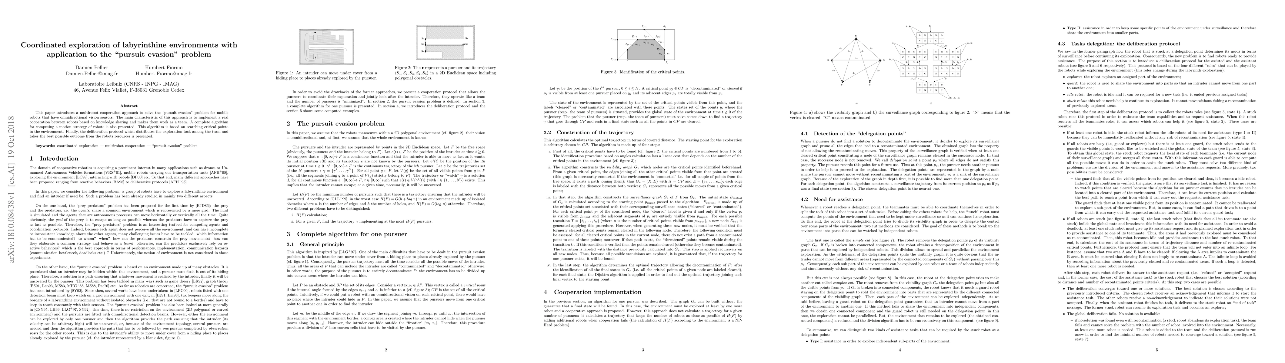 This paper presents a multirobot cooperation approach to solve the pursuit evasion problem in labyrinthine environments using omnidirectional vision sensors. It introduces an algorithm that enables robots to work together effectively by sharing knowledge and distributing exploration tasks.