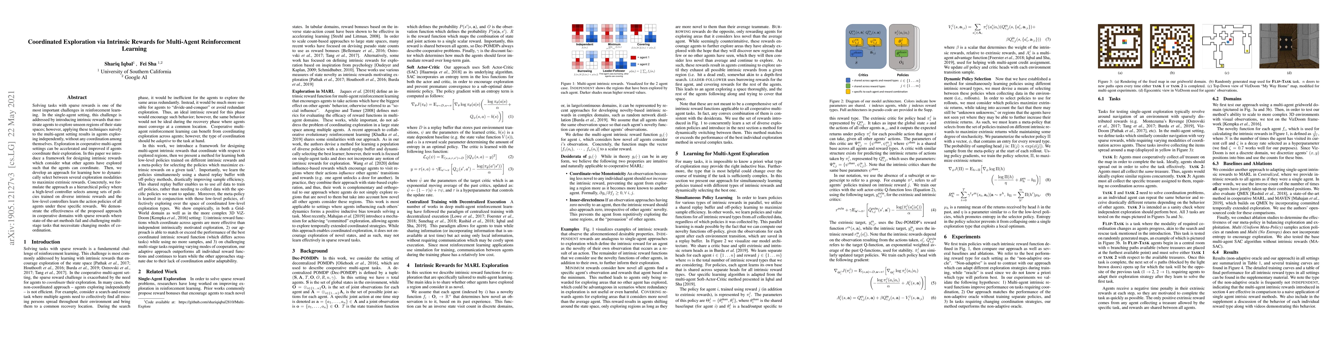 This paper proposes a framework for intrinsic rewards in multi-agent reinforcement learning that enables coordinated exploration by considering other agents' exploration history. It introduces a hierarchical policy approach to dynamically select exploration strategies, demonstrating superior performance in cooperative tasks with sparse rewards.