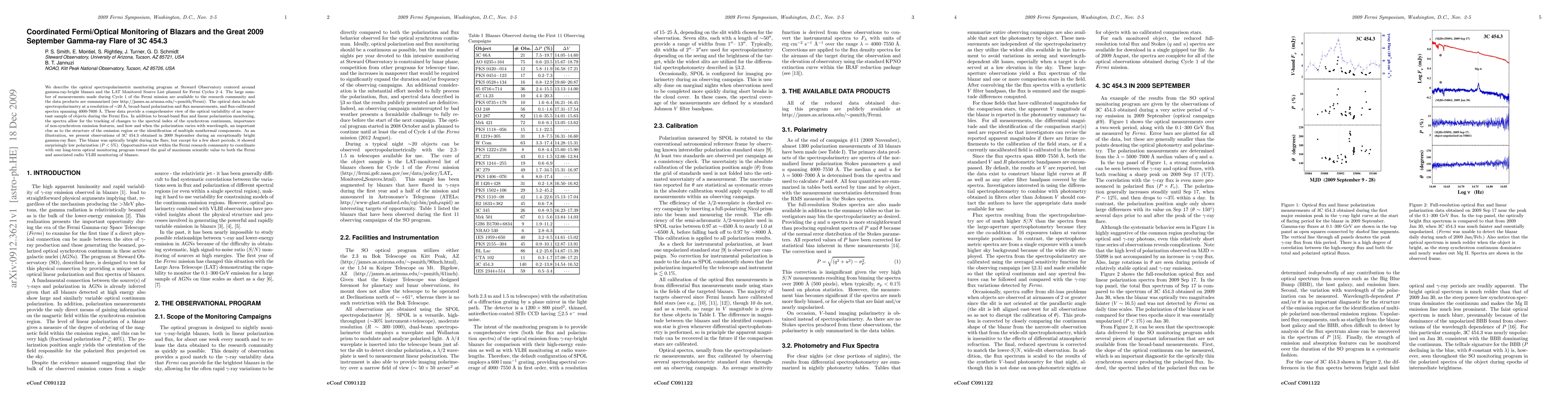 We describe the optical spectropolarimetric monitoring program at Steward Observatory centered around gamma-ray-bright blazars and the LAT Monitored Source List planned for Fermi Cycles 2-4. The large number of measurements made during Cycle 1 of the Fermi mission are available to the research community and the data products are summarized (see http://james.as.arizona.edu/~psmith/Fermi). The optical data include spectropolarimetry at a resolution of ~20 A, broad-band polarization and flux measurements, and flux-calibrated spectra spanning 4000-7600 A. These data provide a comprehensive view of the optical variability of an important sample of objects during the Fermi Era. In addition to broad-band flux and linear polarization monitoring, the spectra allow for the tracking of changes to the spectral index of the synchrotron continuum, importance of non-synchrotron emission features, and how and when the polarization varies with wavelength, an important clue as to the structure of the emission region or the identification of multiple nonthermal components. As an illustration, we present observations of 3C 454.3 obtained in 2009 September during an exceptionally bright gamma-ray flare. The blazar was optically bright during the flare, but except for a few short periods, it showed surprisingly low polarization (P < 5%). Opportunities exist within the Fermi research community to coordinate with our long-term optical monitoring program toward the goal of maximum scientific value to both the Fermi and associated radio VLBI monitoring of blazars.