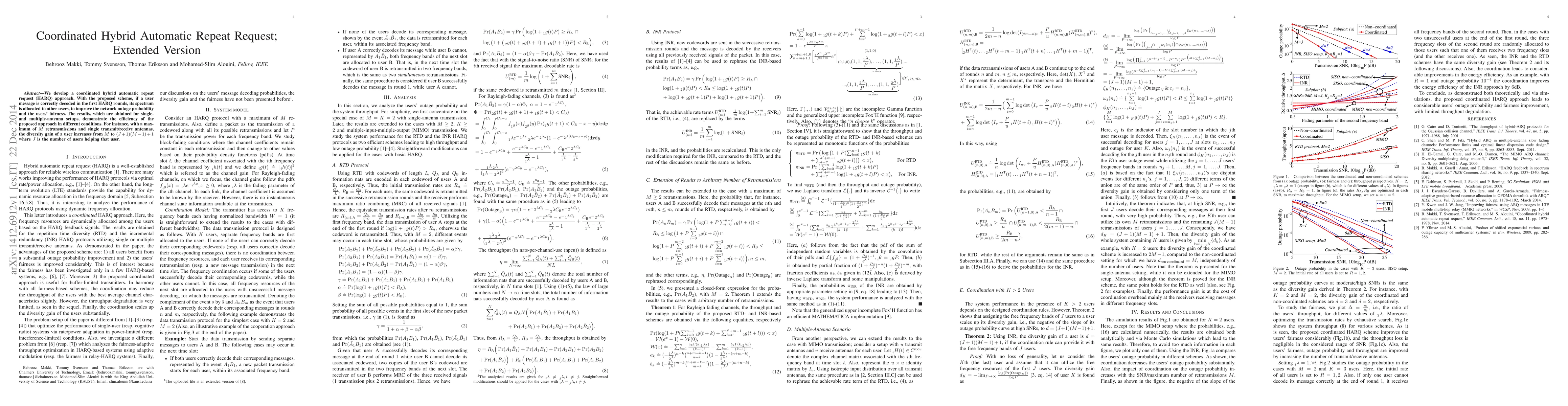 We develop a coordinated hybrid automatic repeat request (HARQ) approach. With the proposed scheme, if a user message is correctly decoded in the first HARQ rounds, its spectrum is allocated to other users, to improve the network outage probability and the users' fairness. The results, which are obtained for single- and multiple-antenna setups, demonstrate the efficiency of the proposed approach in different conditions. For instance, with a maximum of M retransmissions and single transmit/receive antennas, the diversity gain of a user increases from M to (J+1)(M-1)+1 where J is the number of users helping that user.