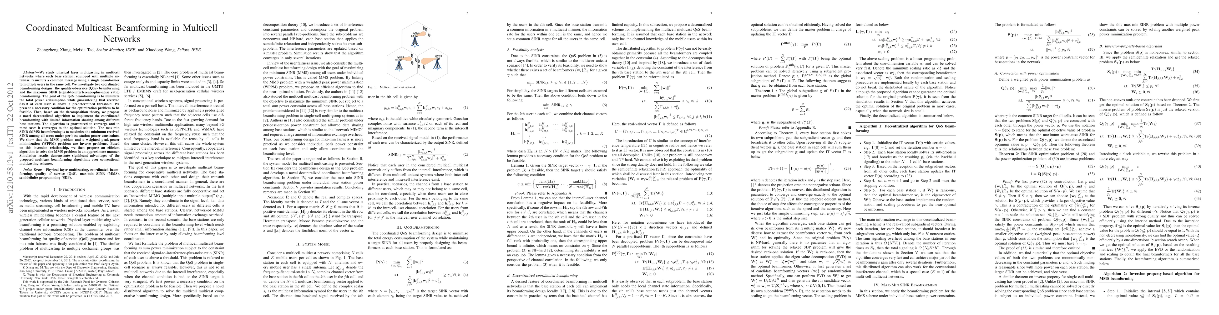 This paper explores coordinated multicast beamforming in multicell networks, proposing two beamforming designs: QoS beamforming to minimize power while maintaining a minimum SINR threshold, and max-min SINR beamforming to maximize the minimum SINR. It introduces a decentralized algorithm for QoS and an efficient method for max-min SINR, both showing significant performance improvements.