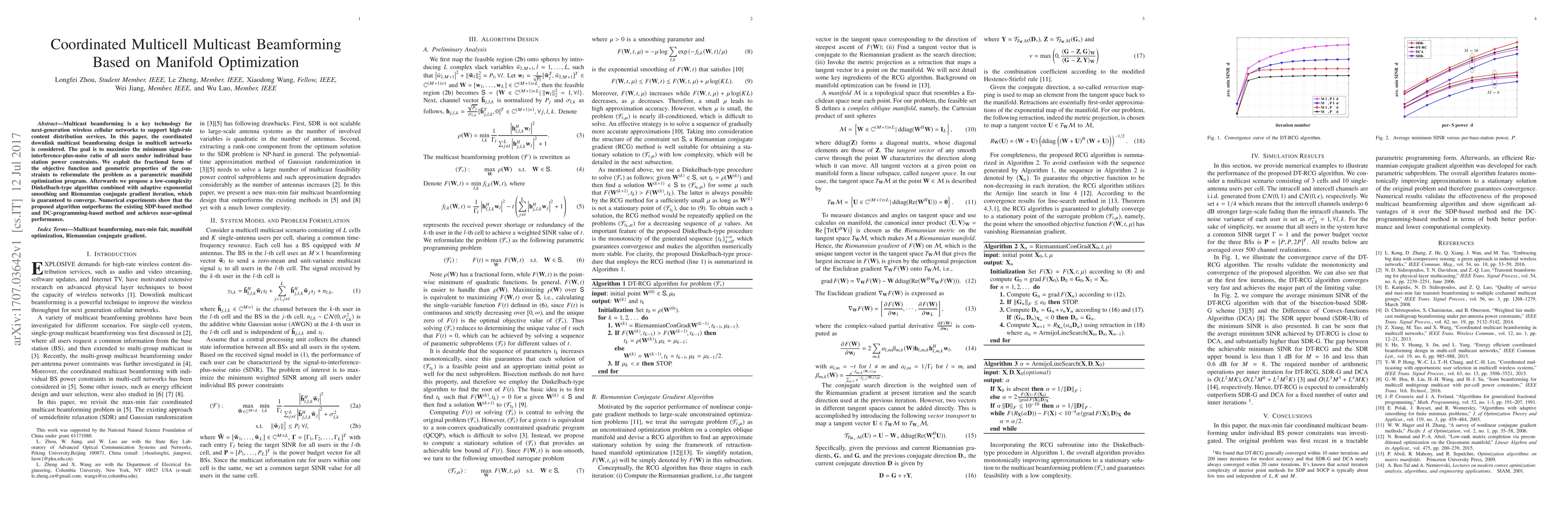 This paper proposes a low-complexity algorithm for coordinated multicell multicast beamforming in wireless networks, reformulating the optimization problem as a parametric manifold optimization. The algorithm, combining Dinkelbach-type method and Riemannian conjugate gradient, achieves near-optimal performance and outperforms existing SDP-based and DC-programming methods.