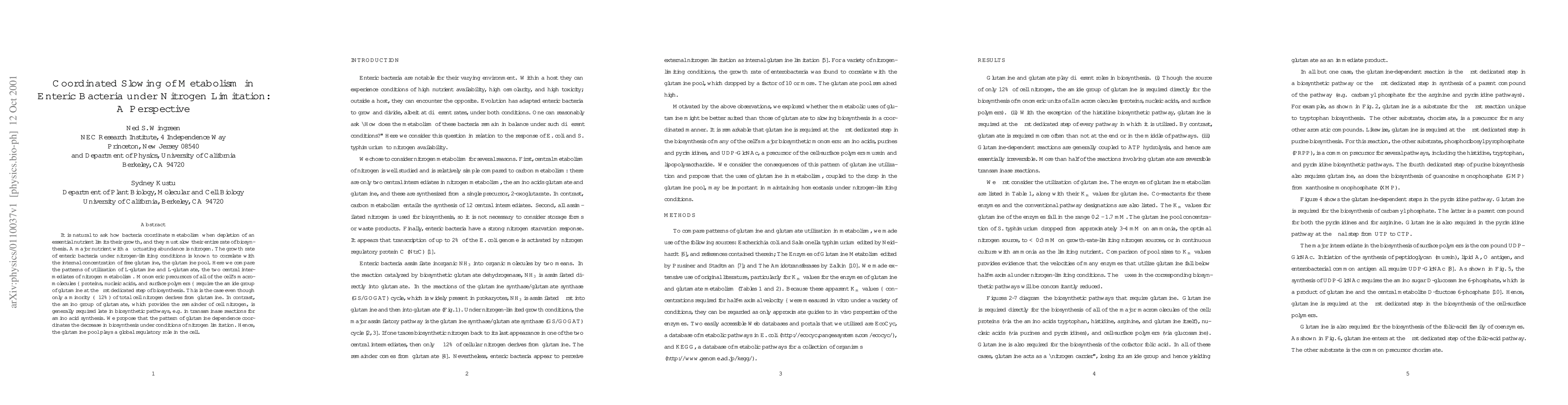 Researchers found that enteric bacteria slow down their metabolism when nitrogen levels are low by prioritizing the use of glutamine, a key intermediate in nitrogen metabolism, to regulate biosynthesis. This suggests that the glutamine pool plays a global regulatory role in cell metabolism under nitrogen limitation.