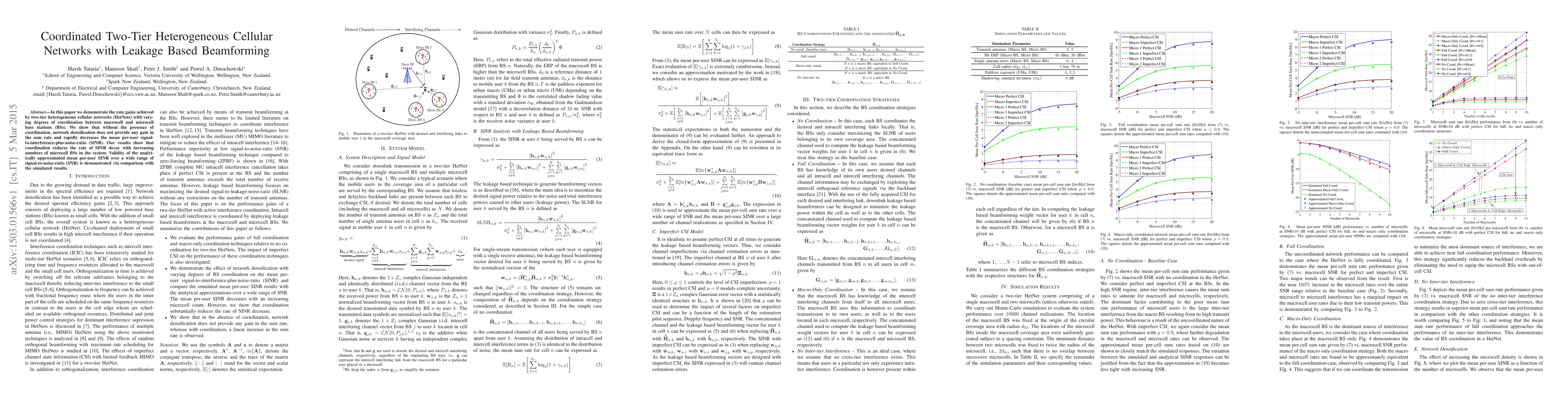 Two-tier heterogeneous cellular networks achieve rate gains through coordination between macrocell and microcell base stations, improving signal-to-interference-plus-noise-ratio with increasing numbers of microcells.