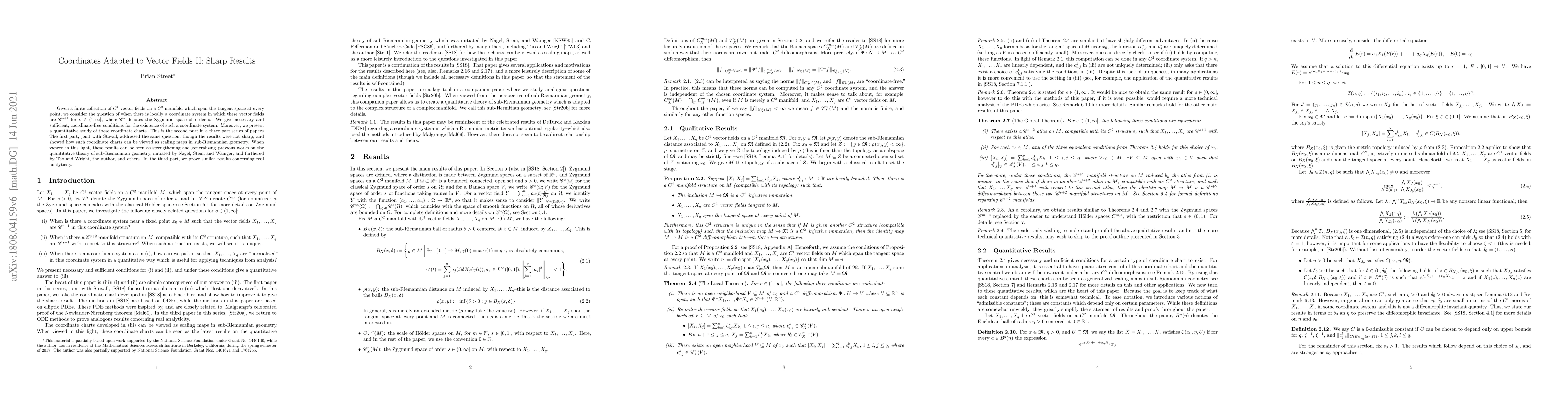 Given a finite collection of $C^1$ vector fields on a $C^2$ manifold which span the tangent space at every point, we consider the question of when there is locally a coordinate system in which these vector fields are $\mathscr{C}^{s+1}$ for $s\in (1,\infty]$, where $\mathscr{C}^s$ denotes the Zygmund space of order $s$. We give necessary and sufficient, coordinate-free conditions for the existence of such a coordinate system. Moreover, we present a quantitative study of these coordinate charts. This is the second part in a three-part series of papers. The first part, joint with Stovall, addressed the same question, though the results were not sharp, and showed how such coordinate charts can be viewed as scaling maps in sub-Riemannian geometry. When viewed in this light, these results can be seen as strengthening and generalizing previous works on the quantitative theory of sub-Riemannian geometry, initiated by Nagel, Stein, and Wainger, and furthered by Tao and Wright, the author, and others. In the third part, we prove similar results concerning real analyticity.