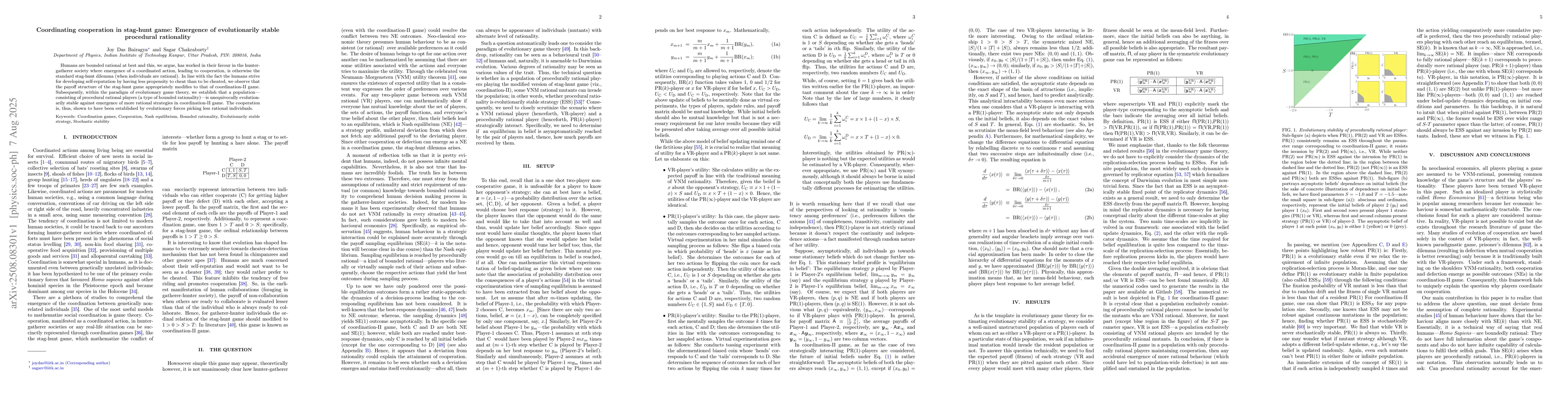 Humans are bounded rational at best and this, we argue, has worked in their favour in the hunter-gatherer society where emergence of a coordinated action, leading to cooperation, is otherwise the standard stag-hunt dilemma (when individuals are rational). In line with the fact the humans strive for developing self-reputation by having less propensity to cheat than to be cheated, we observe that the payoff structure of the stag-hunt game appropriately modifies to that of coordination-II game. Subsequently, within the paradigm of evolutionary game theory, we establish that a population -- consisting of procedural rational players (a type of bounded rationality) -- is unequivocally evolutionarily stable against emergence of more rational strategies in coordination-II game. The cooperation is, thus, shown to have been established by evolutionary forces picking less rational individuals.
