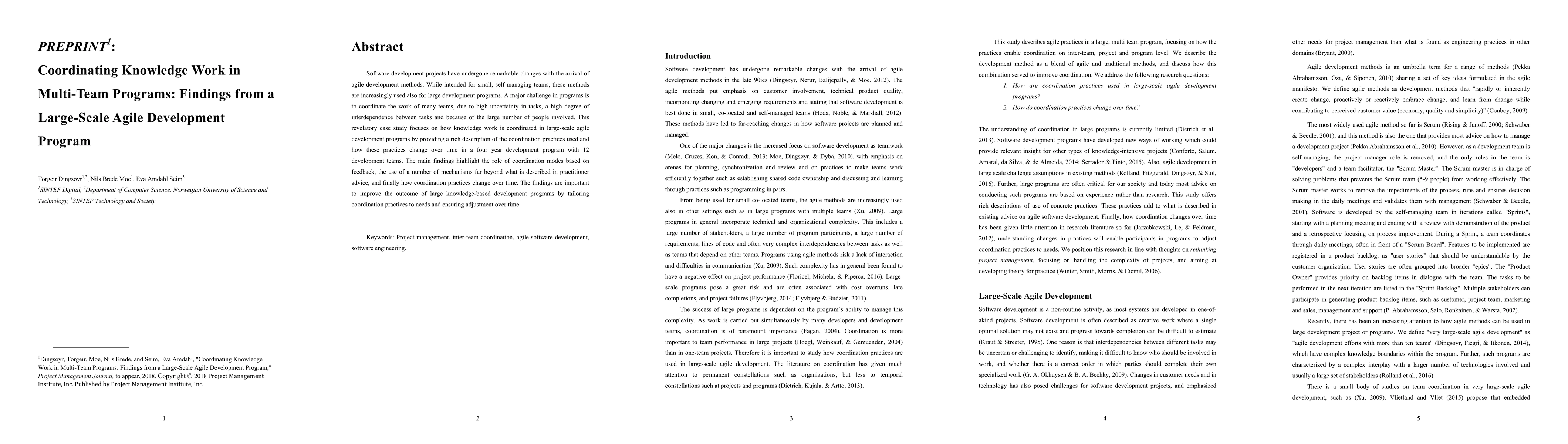 This study examines coordination practices in a large-scale agile development program, highlighting the use of diverse coordination modes based on feedback and mechanisms beyond traditional advice. It finds that coordination practices evolve over time, underscoring the need for adaptive strategies to enhance program outcomes.