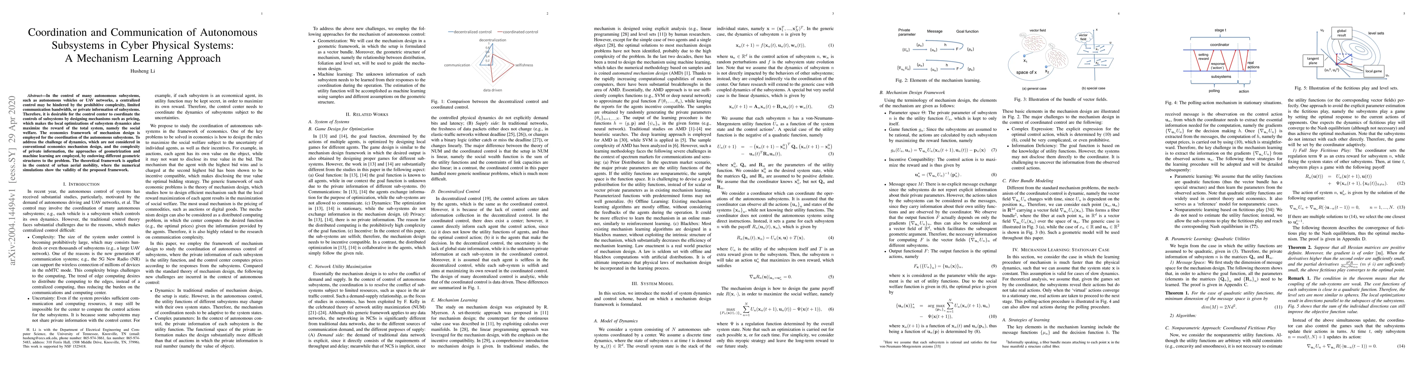 In the control of many autonomous subsystems, such as autonomous vehicles or UAV networks, a centralized control may be hindered by the prohibitive complexity, limited communication bandwidth, or private information of subsystems. Therefore, it is desirable for the control center to coordinate the controls of subsystems by designing mechanisms such as pricing, which makes the local optimizations of subsystem dynamics also maximize the reward of the total system, namely the social welfare. The economics framework of mechanism design is employed for the coordination of the autonomous subsystems. To address the challenge of dynamics, which are not considered in conventional economics mechanism design, and the complexity of private information, the approaches of geometrization and machine learning are employed, by endowing different geometric structures to the problem. The theoretical framework is applied in the context of urban aerial mobility, where the numerical simulations show the validity of the proposed framework.