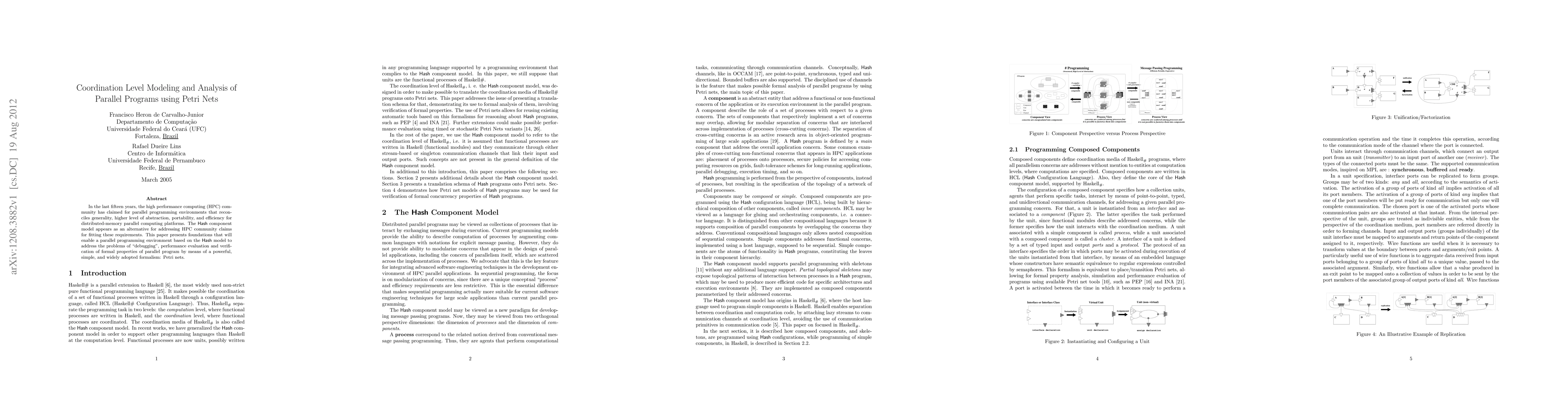 In the last fifteen years, the high performance computing (HPC) community has claimed for parallel programming environments that reconciles generality, higher level of abstraction, portability, and efficiency for distributed-memory parallel computing platforms. The Hash component model appears as an alternative for addressing HPC community claims for fitting these requirements. This paper presents foundations that will enable a parallel programming environment based on the Hash model to address the problems of "debugging", performance evaluation and verification of formal properties of parallel program by means of a powerful, simple, and widely adopted formalism: Petri nets.