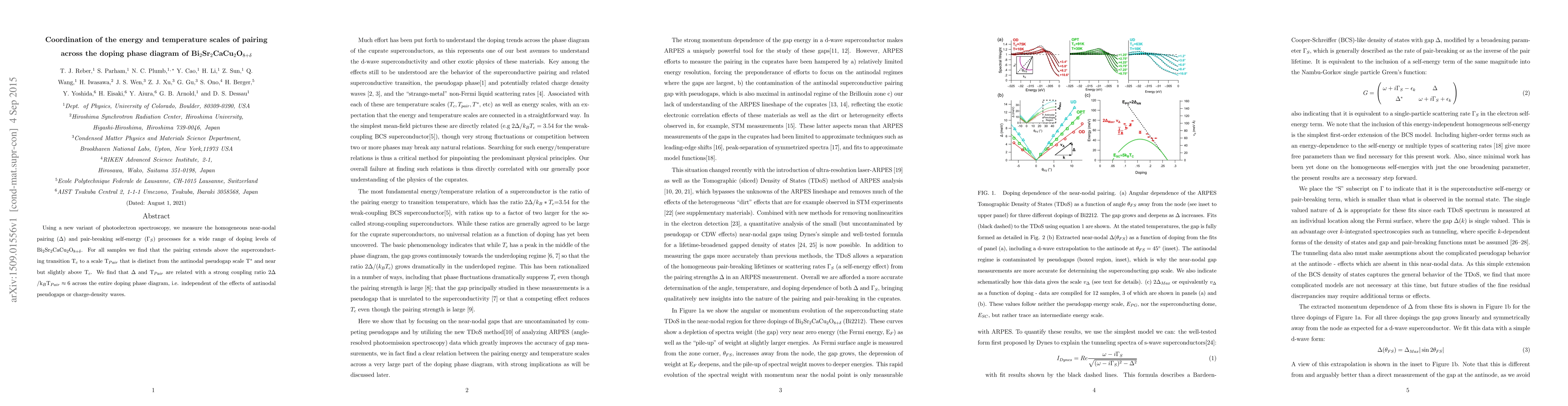 Using a new variant of photoelectron spectroscopy, we measure the homogeneous near-nodal pairing ($\Delta$) and pair-breaking self-energy ($\Gamma_S$) processes for a wide range of doping levels of Bi$_2$Sr$_2$CaCu$_2$O$_{8+\delta}$. For all samples we find that the pairing extends above the superconducting transition T$_c$ to a scale T$_{Pair}$ that is distinct from the antinodal pseudogap scale T$^*$ and near but slightly above T$_c$. We find that $\Delta$ and T$_{Pair}$ are related with a strong coupling ratio 2$\Delta$ /k$_B$T$_{Pair}\approx6$ across the entire doping phase diagram, i.e. independent of the effects of antinodal pseudogaps or charge-density waves.