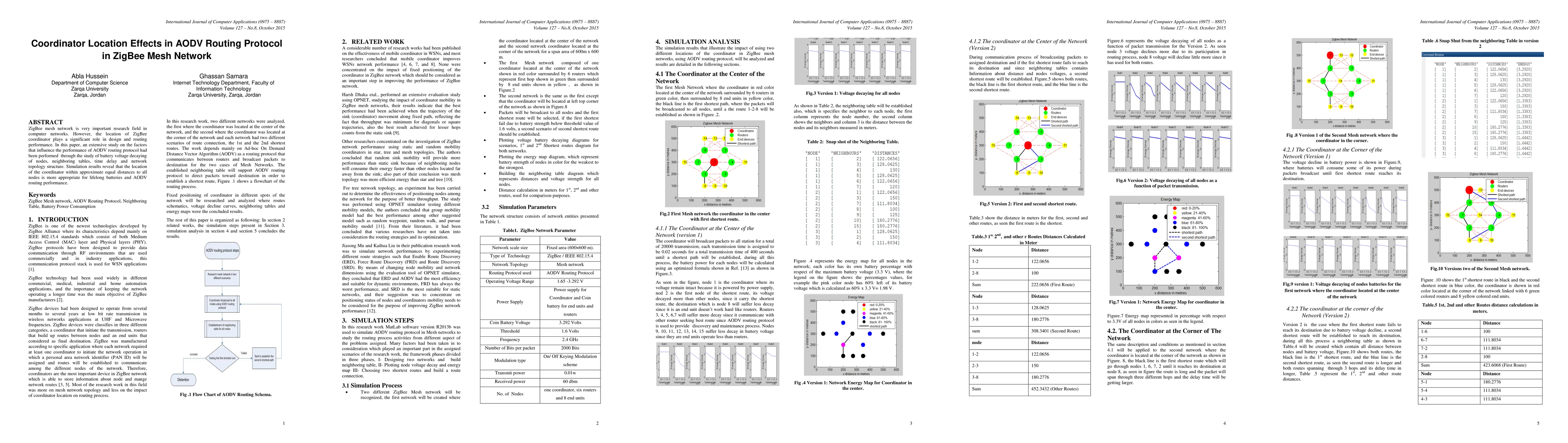 This paper investigates the impact of the ZigBee coordinator's location on the performance of AODV routing in mesh networks, considering factors like battery life, delay, and topology. Simulation results suggest that a coordinator equidistant from all nodes optimizes both battery longevity and routing efficiency.