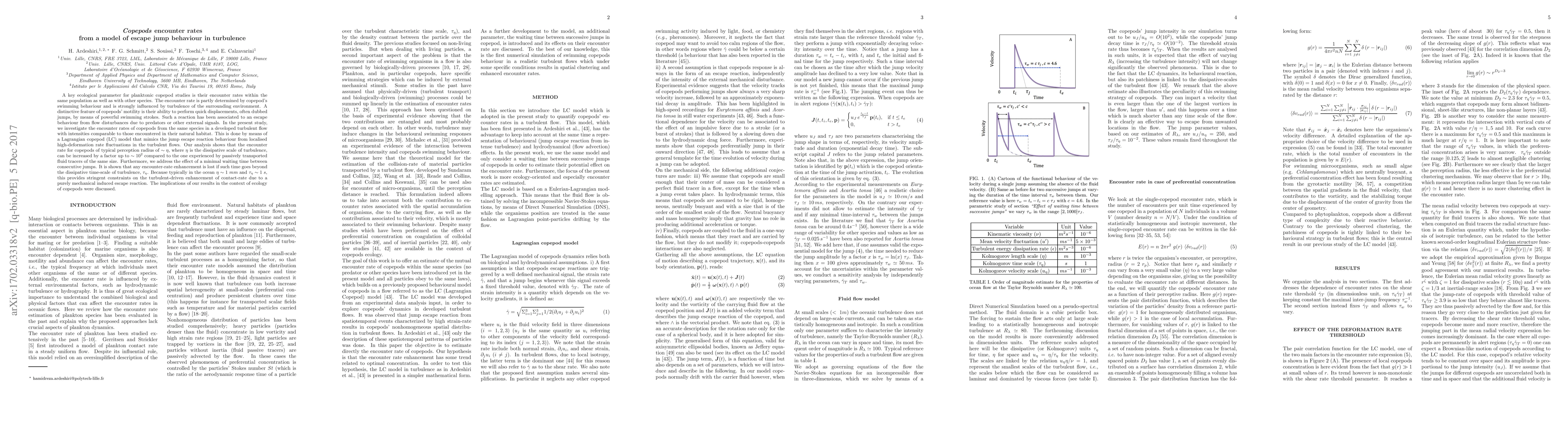 A key ecological parameter for planktonic copepods studies is their interspecies encounter rate which is driven by their behaviour and is strongly influenced by turbulence of the surrounding environment. A distinctive feature of copepods motility is their ability to perform quick displacements, often dubbed jumps, by means of powerful swimming strokes. Such a reaction has been associated to an escape behaviour from flow disturbances due to predators or other external dangers. In the present study, the encounter rate of copepods in a developed turbulent flow with intensity comparable to the one found in copepods' habitat is numerically investigated. This is done by means of a Lagrangian copepod (LC) model that mimics the jump escape reaction behaviour from localised high-shear rate fluctuations in the turbulent flows. Our analysis shows that the encounter rate for copepods of typical perception radius of ~ {\eta}, where {\eta} is the dissipative scale of turbulence, can be increased by a factor up to ~ 100 compared to the one experienced by passively transported fluid tracers. Furthermore, we address the effect of introducing in the LC model a minimal waiting time between consecutive jumps. It is shown that any encounter-rate enhancement is lost if such time goes beyond the dissipative time-scale of turbulence, {\tau}_{\eta}. Because typically in the ocean {\eta} ~ 0.001m and {\tau}_{\eta} ~ 1s, this provides stringent constraints on the turbulent-driven enhancement of encounter-rate due to a purely mechanical induced escape reaction.