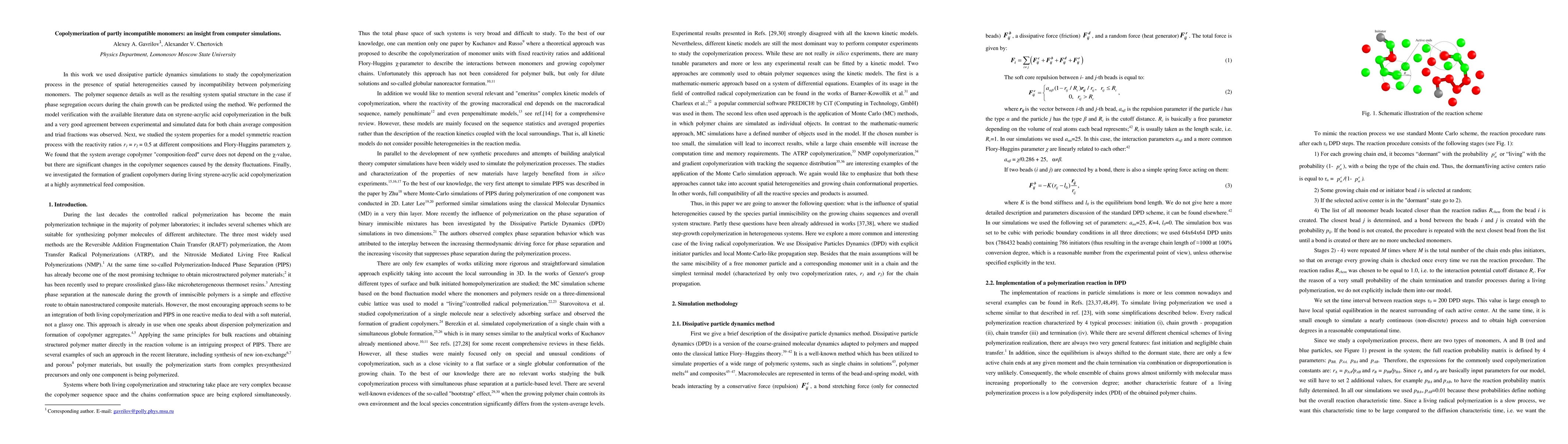 Researchers used computer simulations to study copolymerization of partly incompatible monomers, predicting polymer sequence details and system structure under different conditions. They found that the 'composition-feed' curve doesn't depend on a key parameter, but density fluctuations significantly affect copolymer sequences.