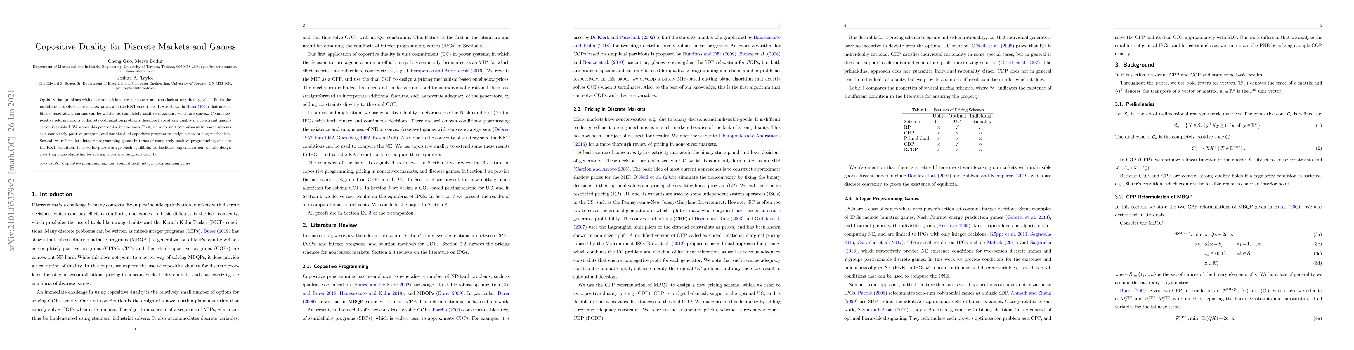 A new approach to discrete optimization problems using copositive duality is presented, enabling strong duality for unit commitment in power systems and solving integer programming games.