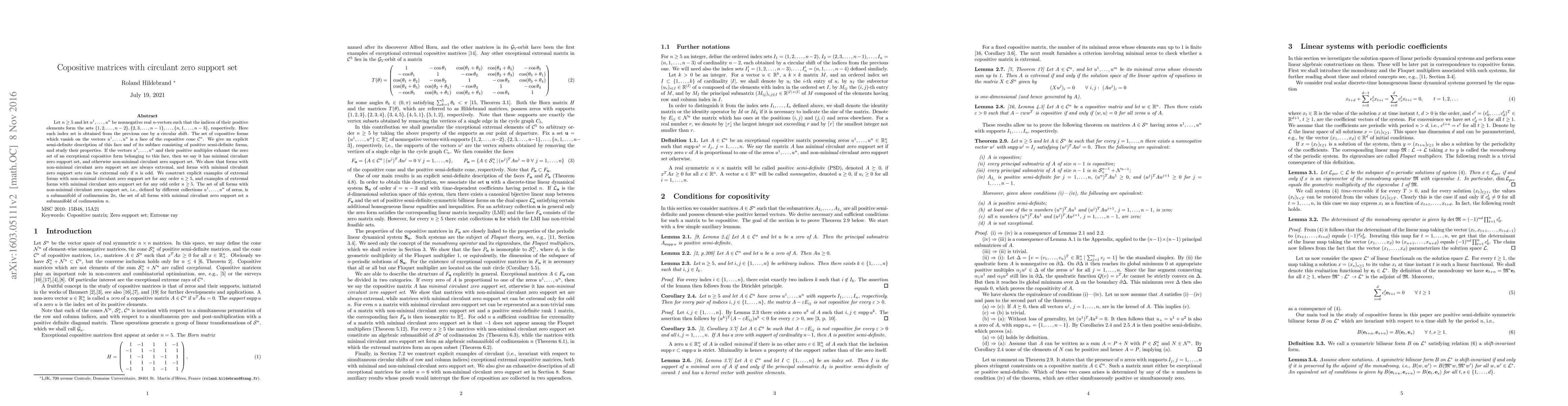 This paper studies copositive matrices with a circulant zero support set, focusing on the copositive forms vanishing on specific nonnegative vectors. It provides a semi-definite description of the face of the copositive cone formed by these forms and identifies extremal forms based on their minimal or non-minimal circulant zero support sets.