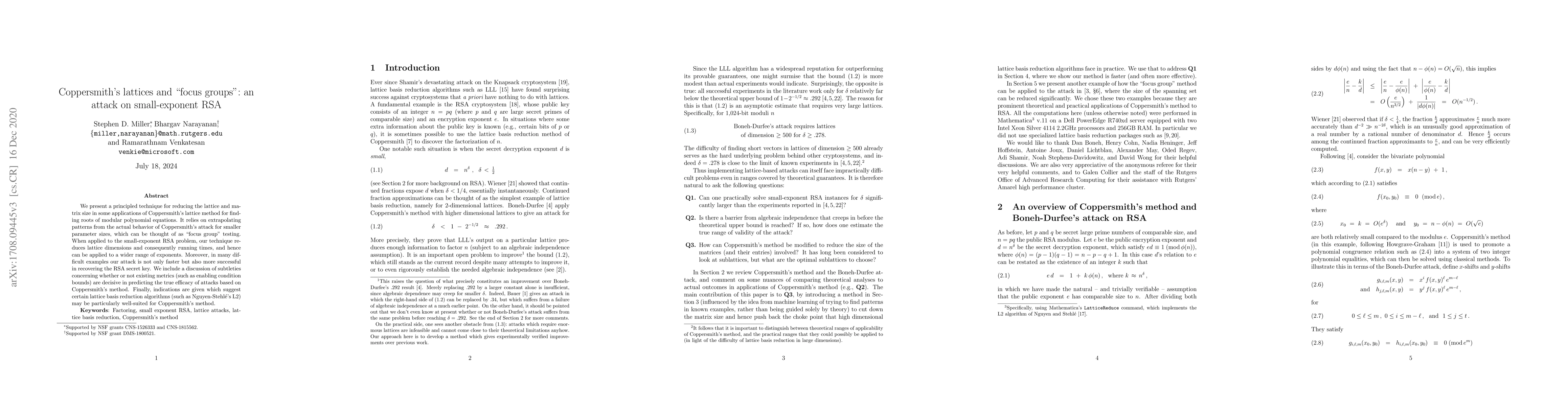 We present a principled technique for reducing the lattice and matrix size in some applications of Coppersmith's lattice method for finding roots of modular polynomial equations. Motivated by ideas from machine learning, it relies on extrapolating patterns from the actual behavior of Coppersmith's attack for smaller parameter sizes, which can be thought of as "focus group" testing. When applied to the small-exponent RSA problem, our technique reduces lattice dimensions and consequently running times, and hence can be applied to a wider range of exponents. Moreover, in many difficult examples our attack is not only faster but also more successful in recovering the RSA secret key. We include a discussion of subtleties concerning whether or not existing metrics (such as enabling condition bounds) are decisive in predicting the true efficacy of attacks based on Coppersmith's method. Finally, indications are given which suggest certain lattice basis reduction algorithms (such as Nguyen-Stehl\'e's L2) may be particularly well-suited for Coppersmith's method.