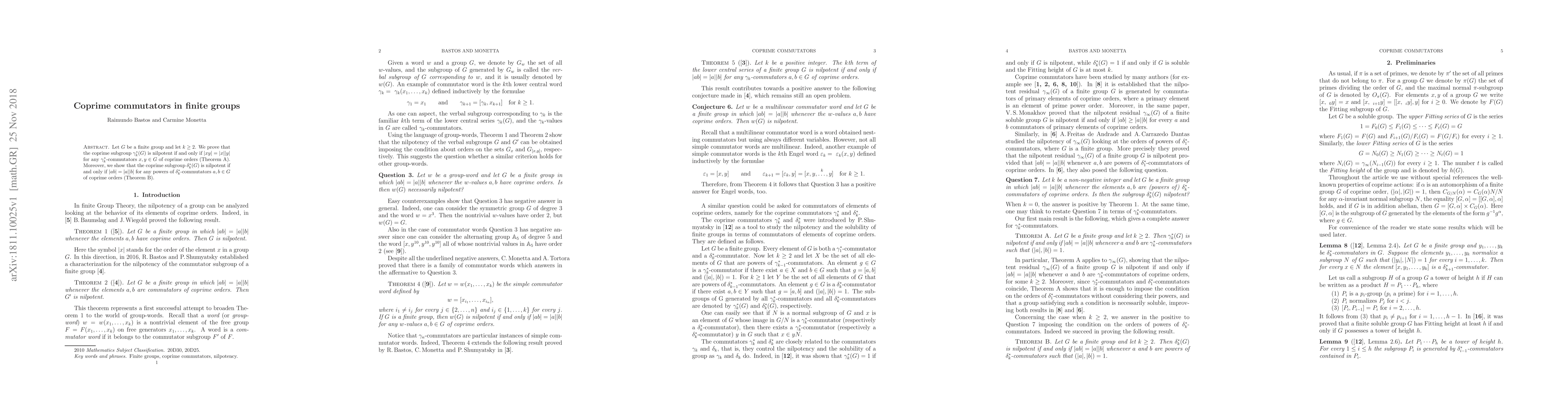 The paper proves that a finite group's coprime subgroup $\gamma_k^*(G)$ is nilpotent if all $\gamma_k^*$-commutators of coprime orders have equal product to the product of their orders. It further establishes that $\delta_k^*(G)$ is nilpotent if powers of $\delta_k^*$-commutators of coprime orders also satisfy this condition.