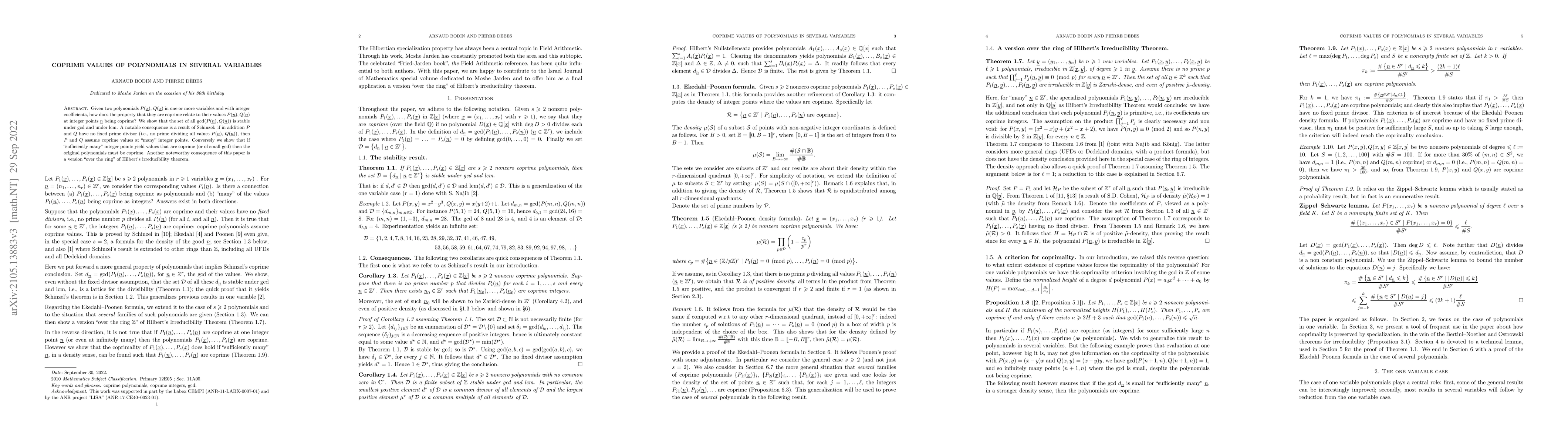 This paper explores the relationship between coprime polynomials and their values at integer points, demonstrating that the set of their greatest common divisors is stable under gcd and lcm. It concludes that if polynomials have no fixed prime divisor, they assume coprime values at many integer points, and conversely, if many integer points yield coprime values, the polynomials are coprime.