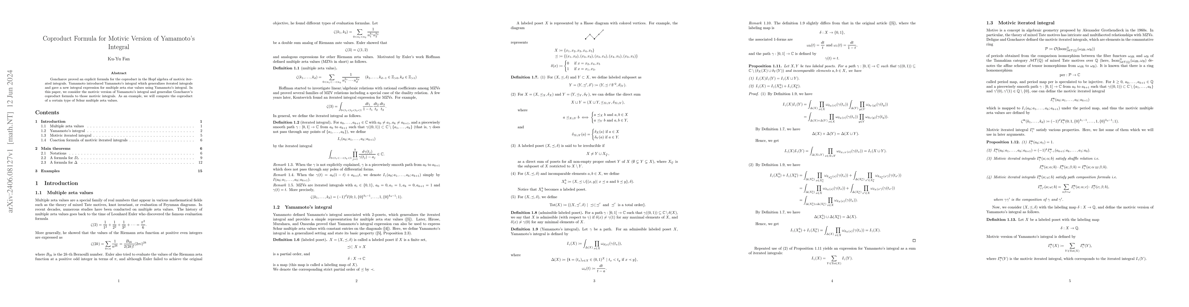 This paper generalizes Goncharov's coproduct formula to the motivic version of Yamamoto's integral, providing a new integral expression for multiple zeta star values. It computes the coproduct of a specific type of Schur multiple zeta values as an example.