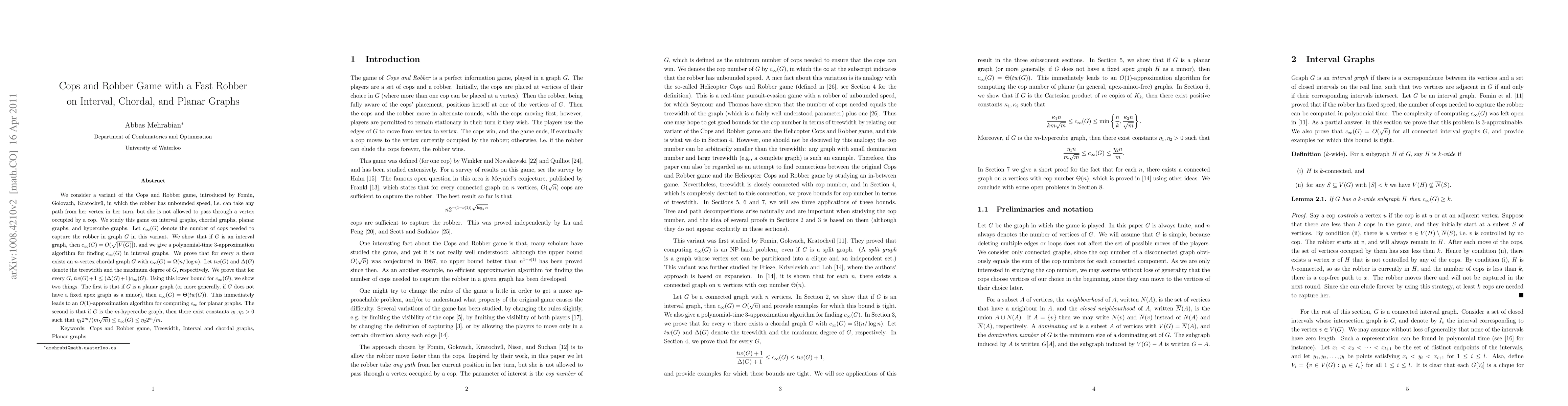 This research paper studies a variant of the Cops and Robber game on different types of graphs, including interval graphs, chordal graphs, planar graphs, and hypercube graphs, with a focus on finding the number of cops needed to capture the robber in O(sqrt(|V(G)|)) time for interval graphs.