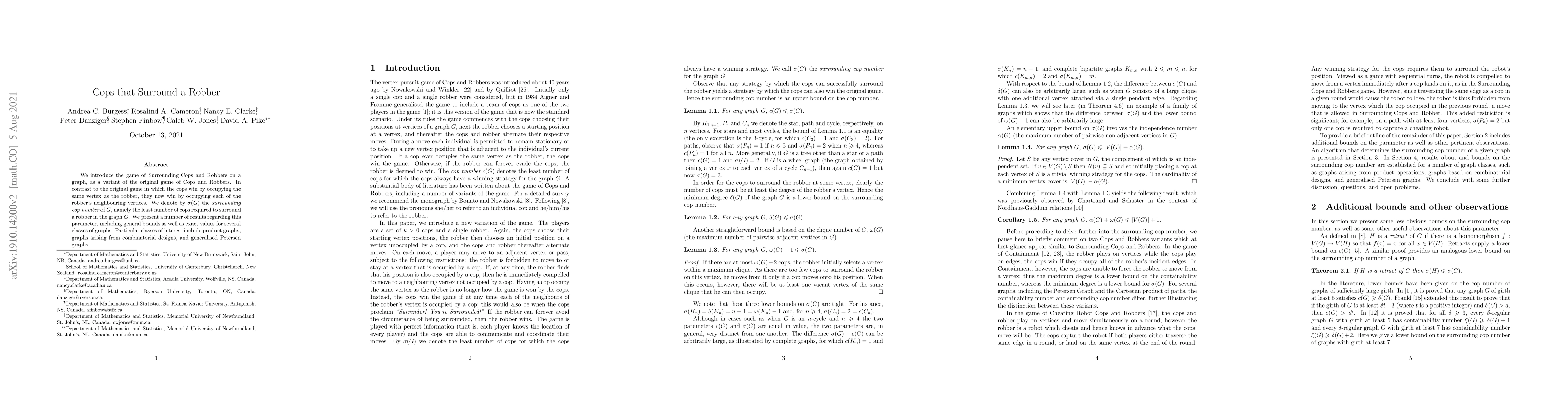 The paper explores the game of Surrounding Cops and Robbers on graphs, where cops win by occupying all vertices adjacent to the robber. It defines the surrounding cop number $\sigma(G)$ as the minimum number of cops required to achieve this, presenting bounds and exact values for various graph classes like product graphs and generalised Petersen graphs.