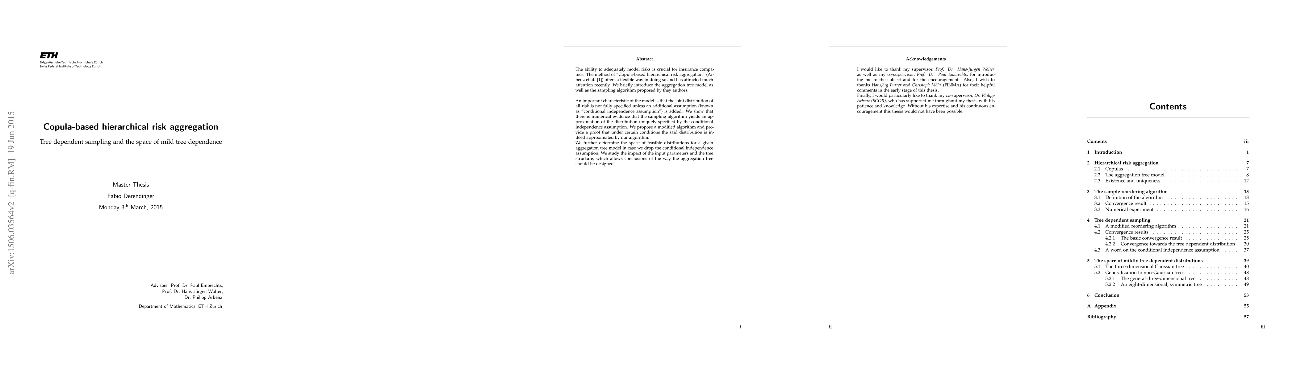 The ability to adequately model risks is crucial for insurance companies. The method of "Copula-based hierarchical risk aggregation" by Arbenz et al. offers a flexible way in doing so and has attracted much attention recently. We briefly introduce the aggregation tree model as well as the sampling algorithm proposed by they authors. An important characteristic of the model is that the joint distribution of all risk is not fully specified unless an additional assumption (known as "conditional independence assumption") is added. We show that there is numerical evidence that the sampling algorithm yields an approximation of the distribution uniquely specified by the conditional independence assumption. We propose a modified algorithm and provide a proof that under certain conditions the said distribution is indeed approximated by our algorithm. We further determine the space of feasible distributions for a given aggregation tree model in case we drop the conditional independence assumption. We study the impact of the input parameters and the tree structure, which allows conclusions of the way the aggregation tree should be designed.