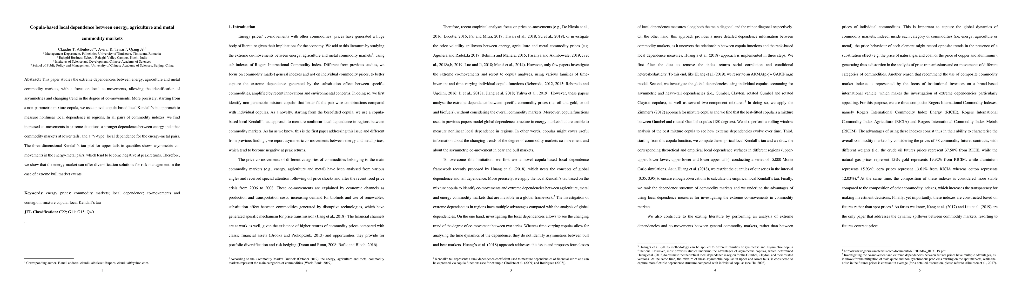 This paper studies the extreme dependencies between energy, agriculture and metal commodity markets, with a focus on local co-movements, allowing the identification of asymmetries and changing trend in the degree of co-movements. More precisely, starting from a non-parametric mixture copula, we use a novel copula-based local Kendall's tau approach to measure nonlinear local dependence in regions. In all pairs of commodity indexes, we find increased co-movements in extreme situations, a stronger dependence between energy and other commodity markets at lower tails, and a 'V-type' local dependence for the energy-metal pairs. The three-dimensional Kendall's tau plot for upper tails in quantiles shows asymmetric co-movements in the energy-metal pairs, which tend to become negative at peak returns. Therefore, we show that the energy market can offer diversification solutions for risk management in the case of extreme bull market events.