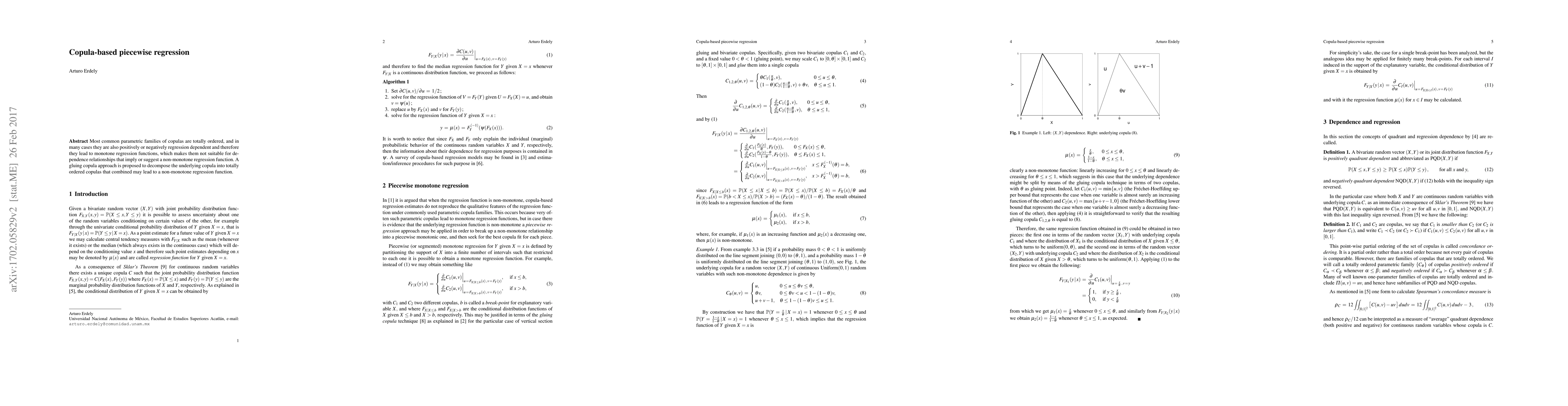 Most common parametric families of copulas are totally ordered, and in many cases they are also positively or negatively regression dependent and therefore they lead to monotone regression functions, which makes them not suitable for dependence relationships that imply or suggest a non-monotone regression function. A gluing copula approach is proposed to decompose the underlying copula into totally ordered copulas that combined may lead to a non-monotone regression function.