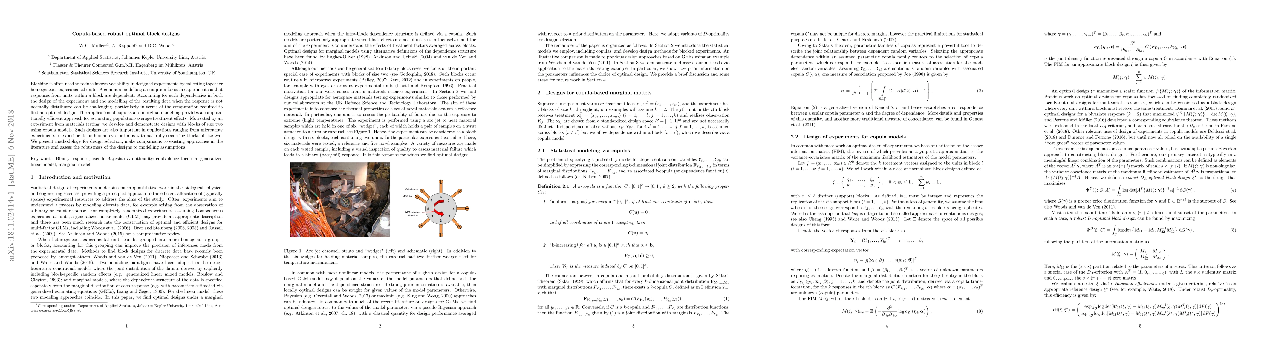This paper develops copula-based robust optimal block designs for experiments with dependent responses within blocks, demonstrating their application in materials testing and comparing their efficiency and robustness to existing methods. The methodology provides a computationally efficient approach for estimating treatment effects.