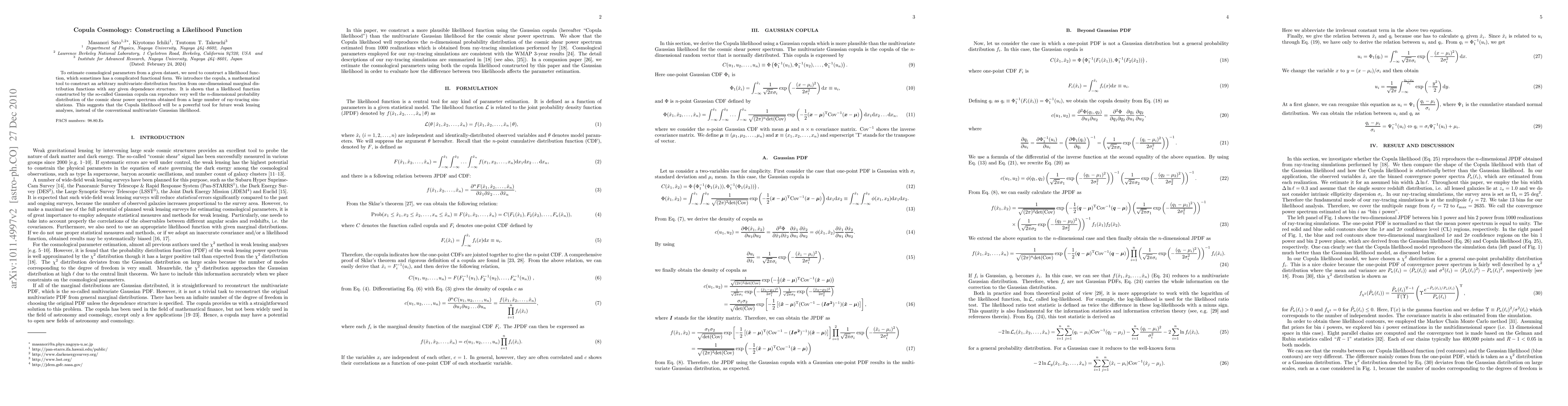 This paper introduces the use of copulas to construct likelihood functions for estimating cosmological parameters, demonstrating that a Gaussian copula likelihood can accurately reproduce the n-dimensional probability distribution of cosmic shear power spectrum data. It suggests that copula-based likelihoods are a powerful alternative to traditional multivariate Gaussian likelihoods for weak lensing analyses.
