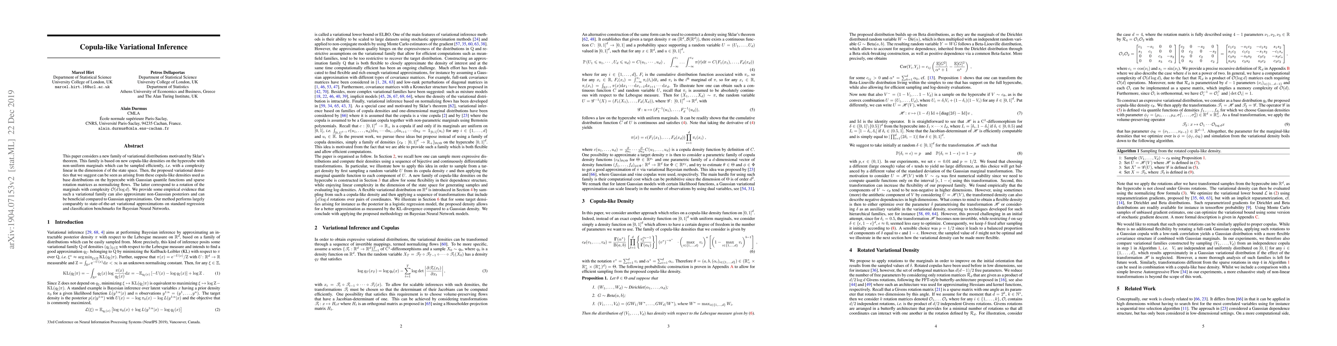This paper proposes a new variational inference method based on copula-like densities with efficient sampling on the hypercube, showing potential for approximating non-Gaussian posteriors and performing comparably to state-of-the-art methods on Bayesian Neural Networks benchmarks.