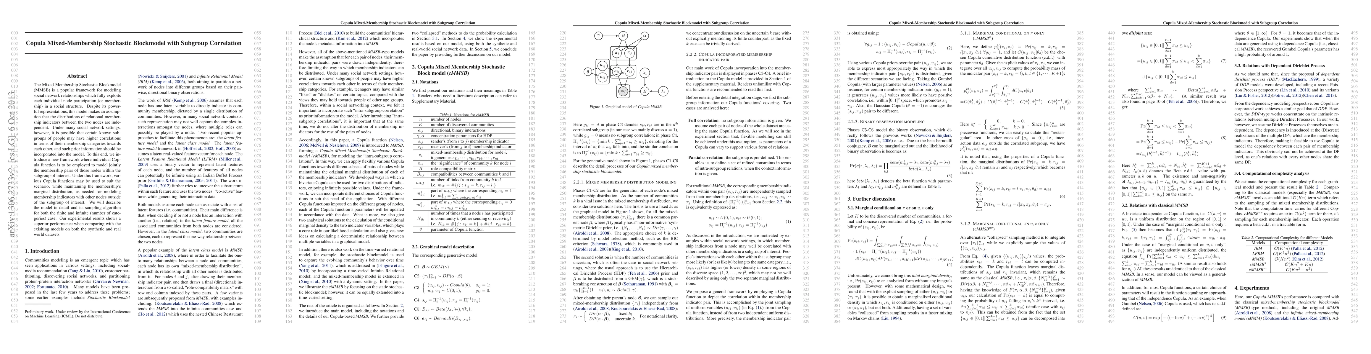 The paper proposes a Copula Mixed-Membership Stochastic Blockmodel (cMMSB) to better model intra-subgroup correlations in social networks by incorporating known subgroup correlations into the membership indicators, and it compares its performance with other models in link prediction tasks.