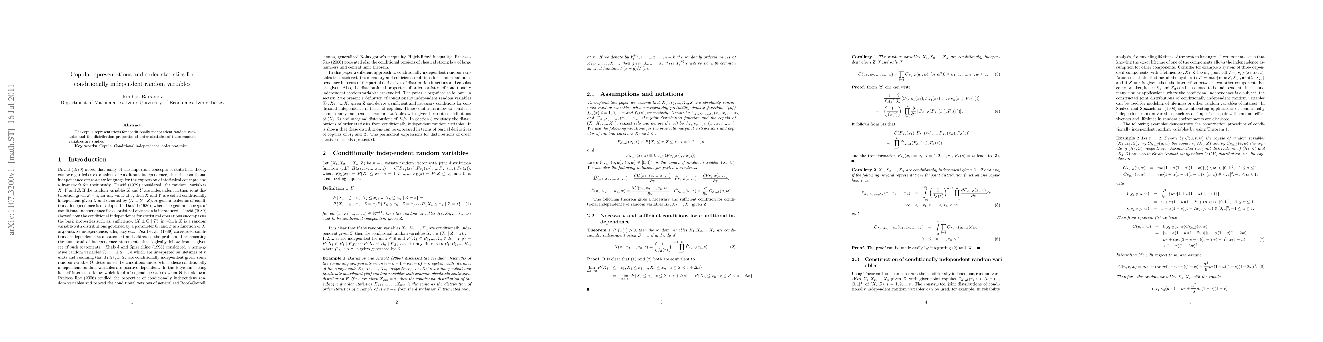 This paper investigates the copula representations for conditionally independent random variables and examines the distribution properties of their order statistics. It provides insights into how these dependencies and statistical structures can be modeled and analyzed.